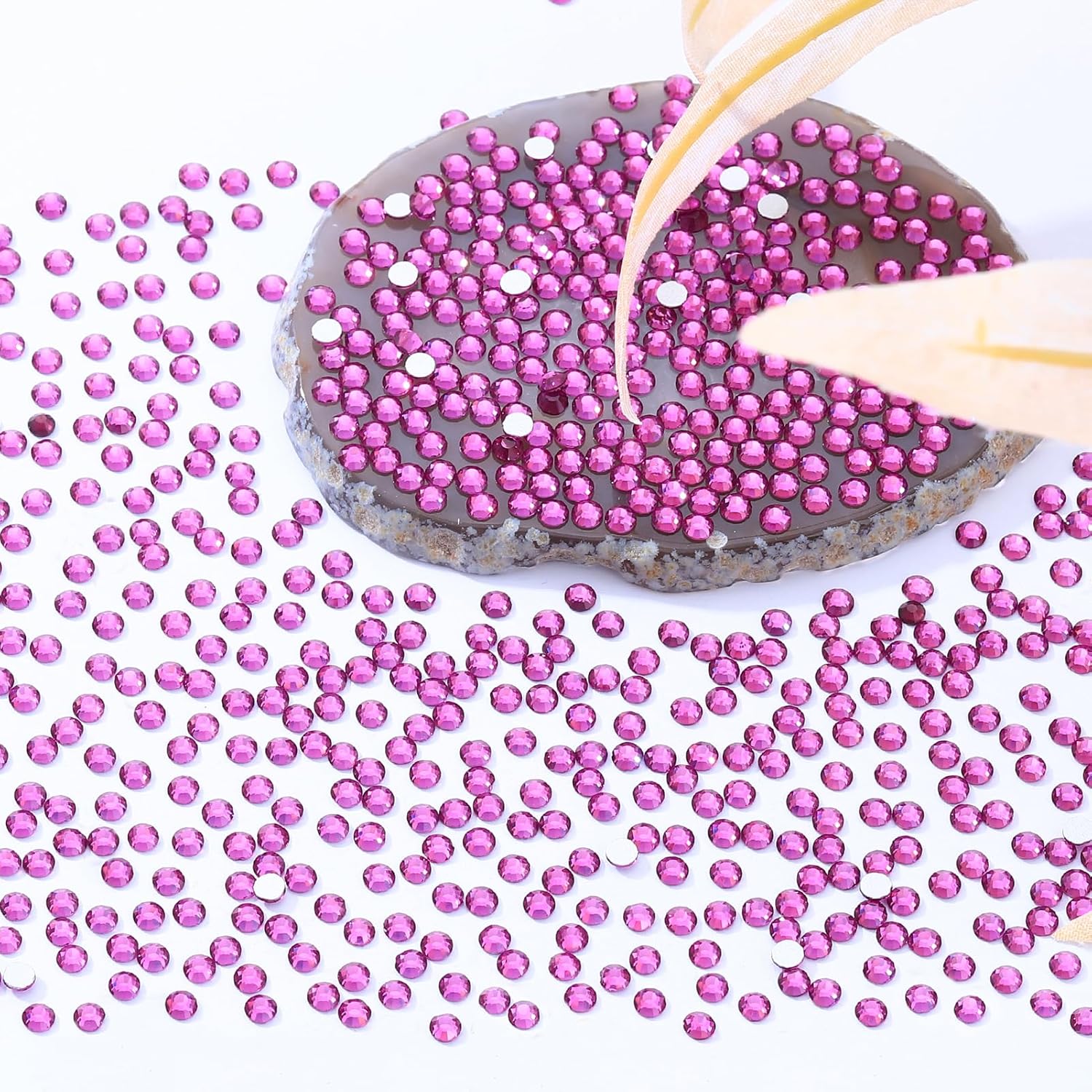Fuchsia Flatback Rhinestones, Glass Rhinestones for Nail Art and Craft, Glue Fix, Loose Crystal Gemstones(Fuchsia, SS10, 2880pcs, 2.7-2.8mm)