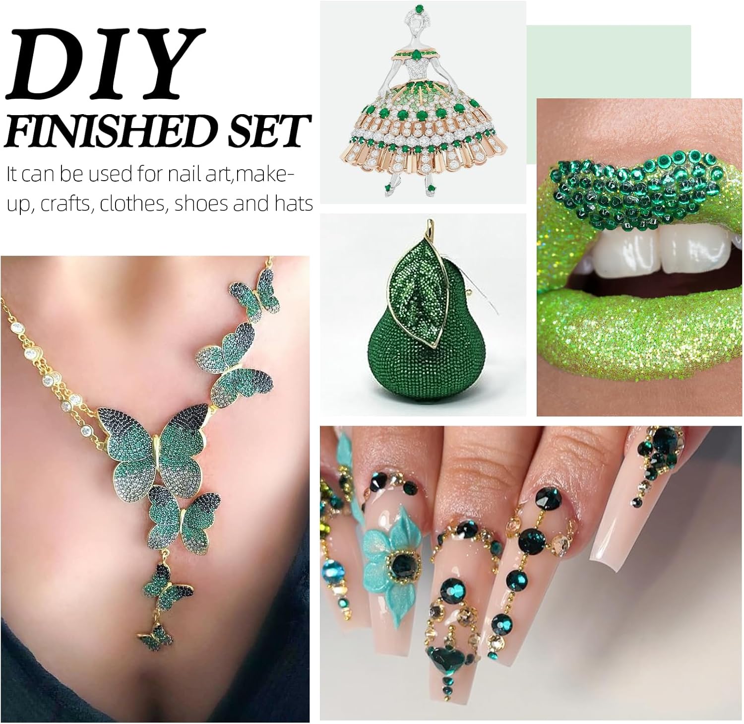 Green Flatback Rhinestones, Glass Rhinestones for Nail Art and Craft, Glue Fix, Loose Crystal Gemstones(Green, SS12, 2880pcs, 2.9-3.0mm)