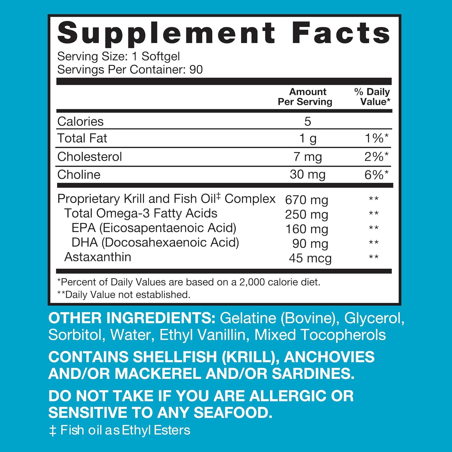 Qunol Advanced Omega 3 Krill and Fish Oil Complex, 10x Better Bioavailability, One Pill Dose, 250mg EPA & DHA, Supports Brain, Eye, Heart and Joint Health, 90 Count (Pack of 1)