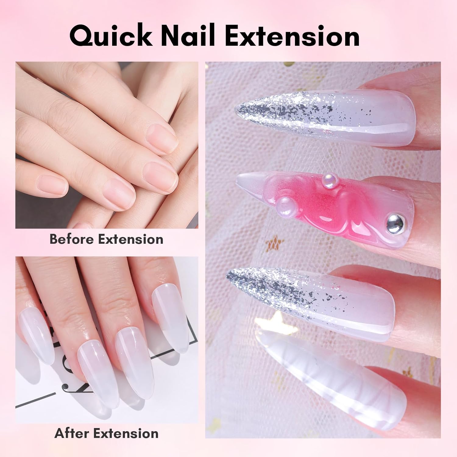 - Nail Strengthening- Get strong, healthy nails with ease using this gel nail extension builder, which creates a protective base, preventing breakage and promoting healthy nail growth. Perfect for weak or brittle nails.Strong and durable poly nail gel color for healthy nail growth and protection.