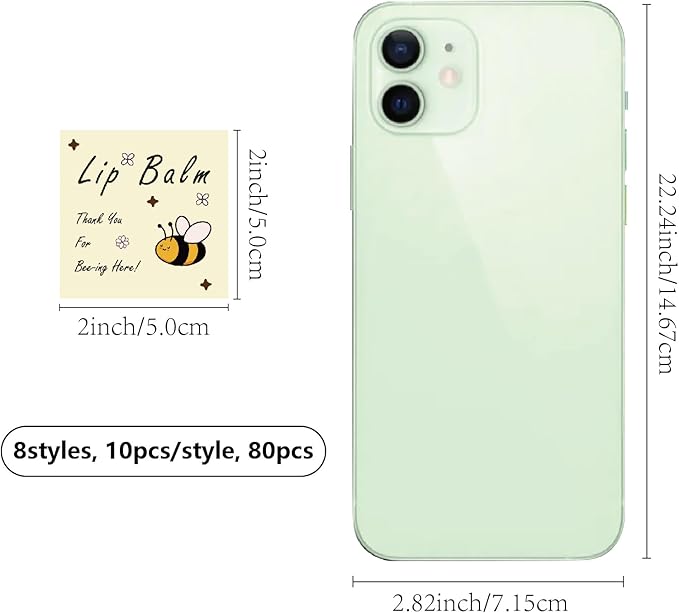 - SIZE: square custom lip balm diy label sticker about 1.96×1.96inch (5x5cm), 8 styles, 10pcs/style, 80pcs/set.
