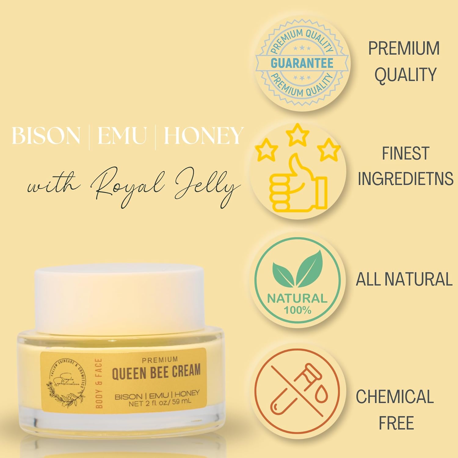 BISON | EMU | HONEY Balm - with pasture raised Bison tallow - Astaxanthin, Bakuchiol, Royal Jelly | Whipped Tallow Balm | with honey and emu oil | All natural - 2 fl oz (2 OZ, Queen Bee)