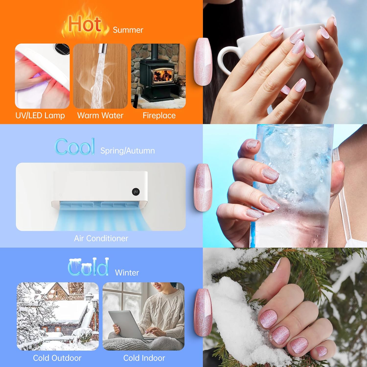 YTD Likomey Pearl Thread Color Changing Gel Nail Polish,15ml Nude Pink To Rose Pink Shell Mermaid Drawing Pearlescent Glitter Mood Temperature Change Colors,Fall Winter Thermal Manicure UV Gel,WB423