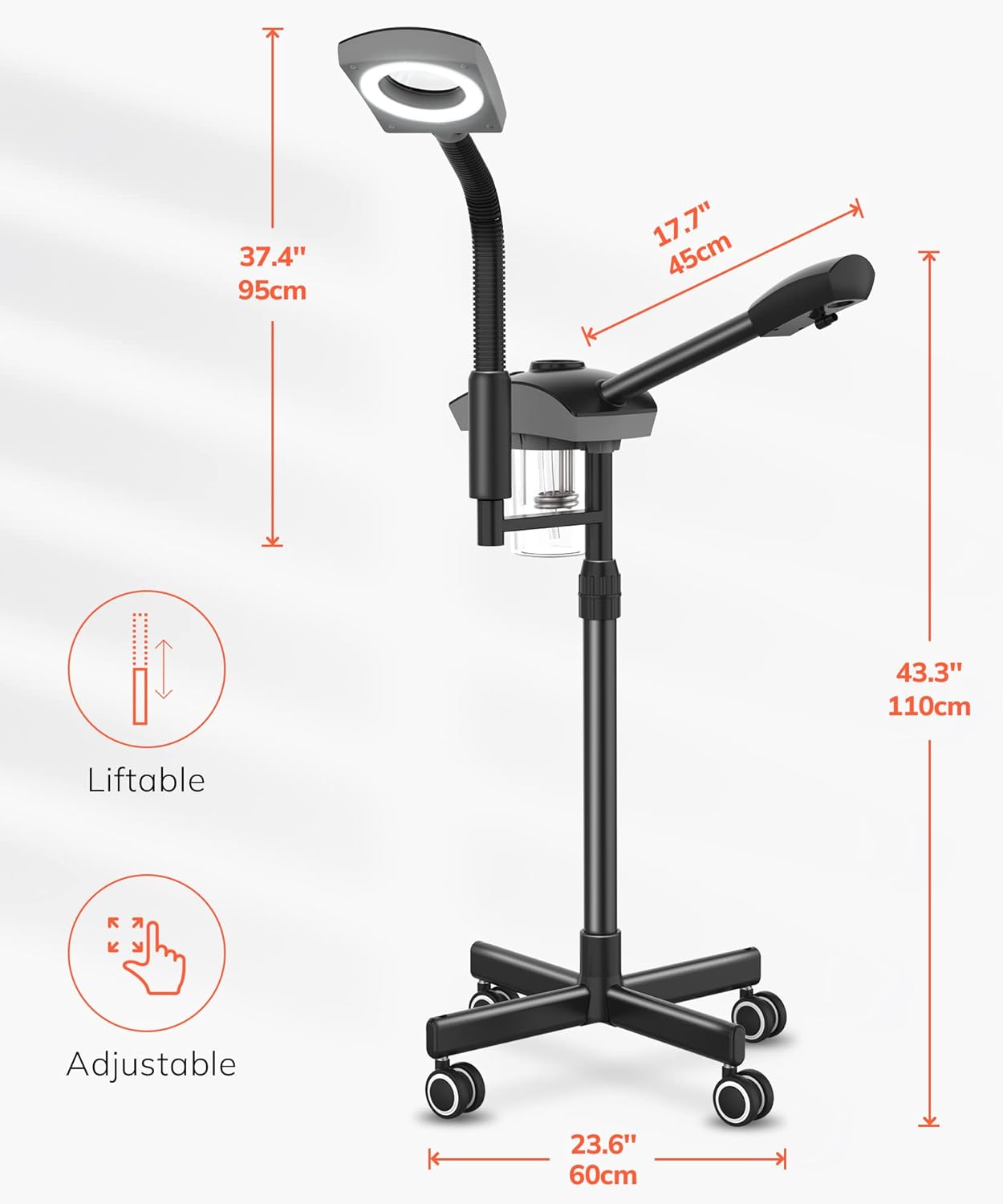 - ✅Easy to Adjust: The professional facial steamer lens can rotate 360 degrees and flip up and down 180 degrees. Convenient to adjust the height and arm in any position. You can conveniently moisturize your face, neck, shoulders, arms, back, legs when you are sitting or lying down.