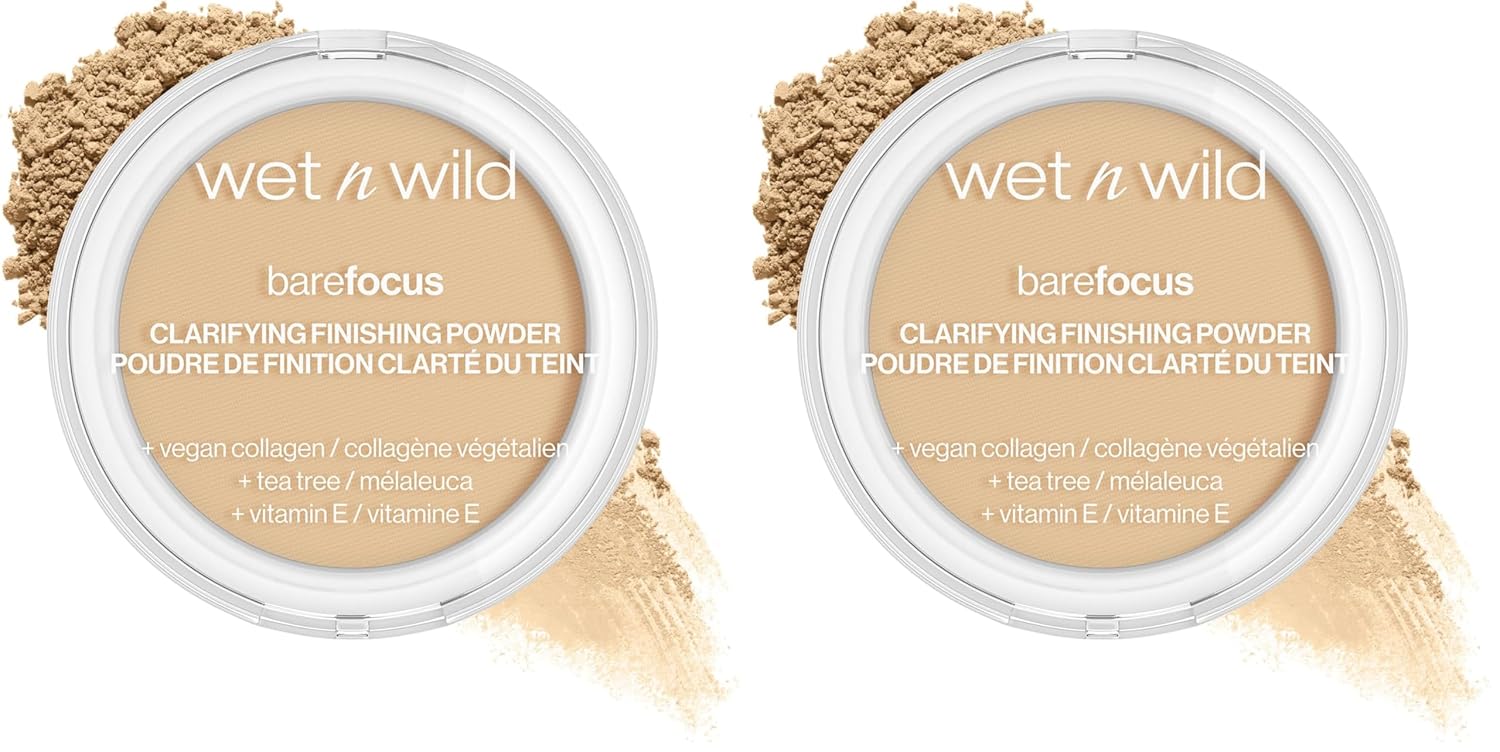 wet n wild Bare Focus Clarifying Finishing Powder | Matte | Pressed Setting Powder Light-Medium (Pack of 2)