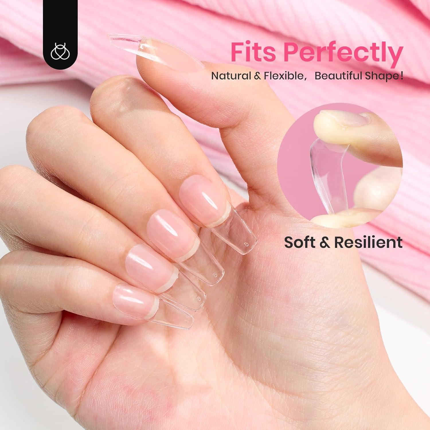 - 【Premium Quality Nail Tips】:Crafted from premium PMMA, beetles medium coffin fake nails tips offer an innovative natural wear feeling.The thickness of each nail tip is 2-4 times more than natural nail, providing sturdy and durable extended nails. Even if bent, it retains its original form without leaving marks, ensuring seamless nail application and design.
