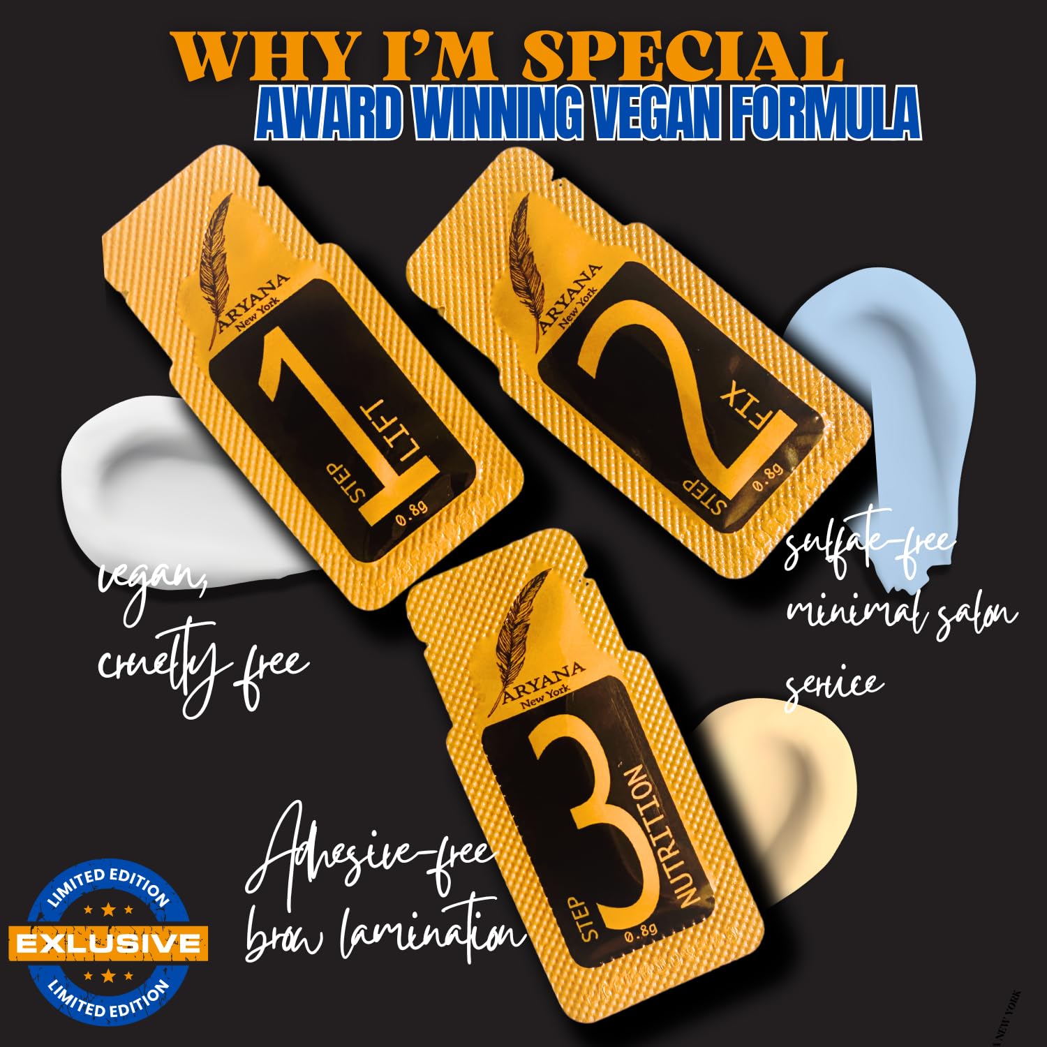 - SACHET DESIGN 3 STEPS: Eyebrow lamination can not get any easier than this with 3 steps adhesive-free formula you achieve feathery, full, fluffy, and voluminous eyebrows at home or salon in less than 20 minutes. The results last up to 6 weeks. It's affordable, fast and the results are stunning!