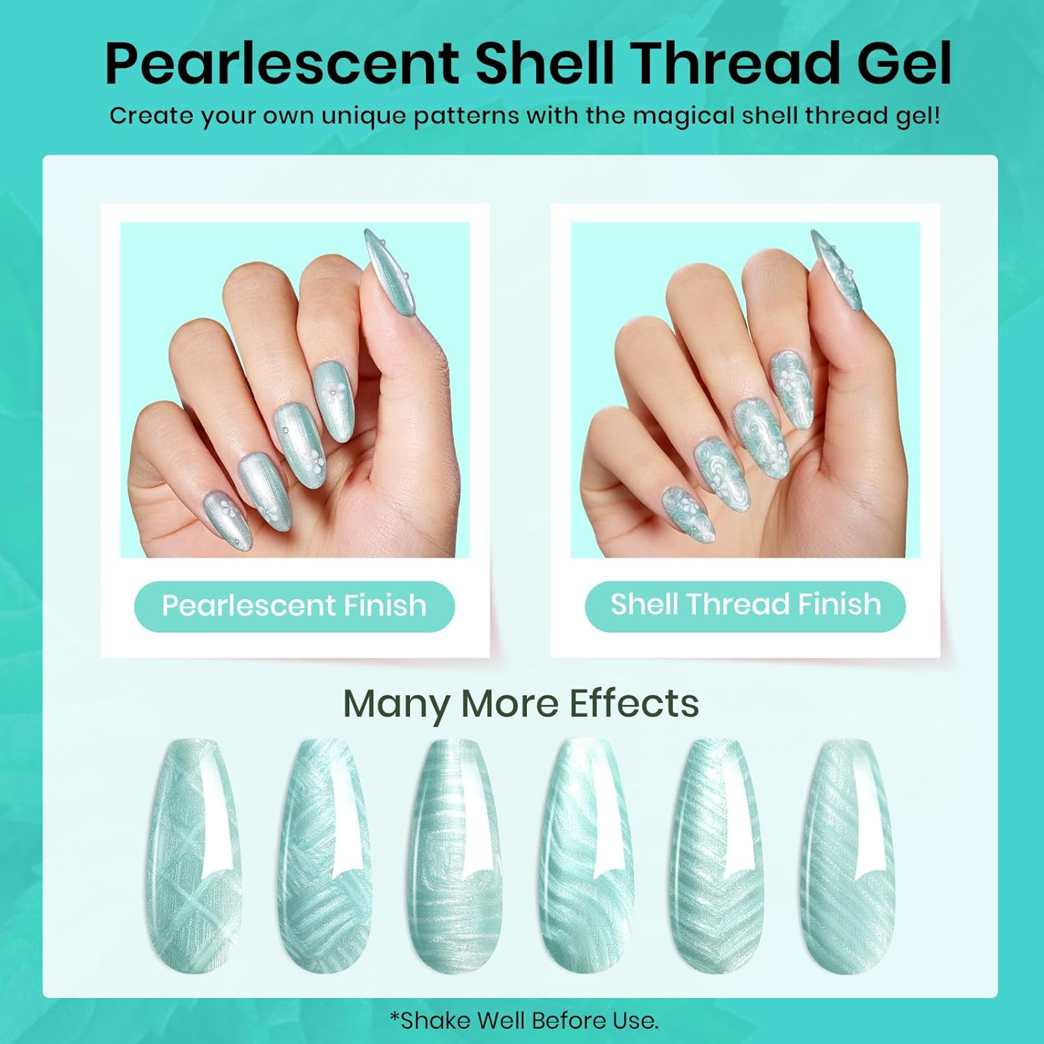 - 【Personal Style】: Beetles 15ML Pastel Gel Nail Polish mint green pearl-inspired gel, radiating a shimmering shine, one bottle two different shades: Shimmer Pearlescent & Shell thread, elegant shades of popular and trendy colors suitable for spring summer and daily routine life!