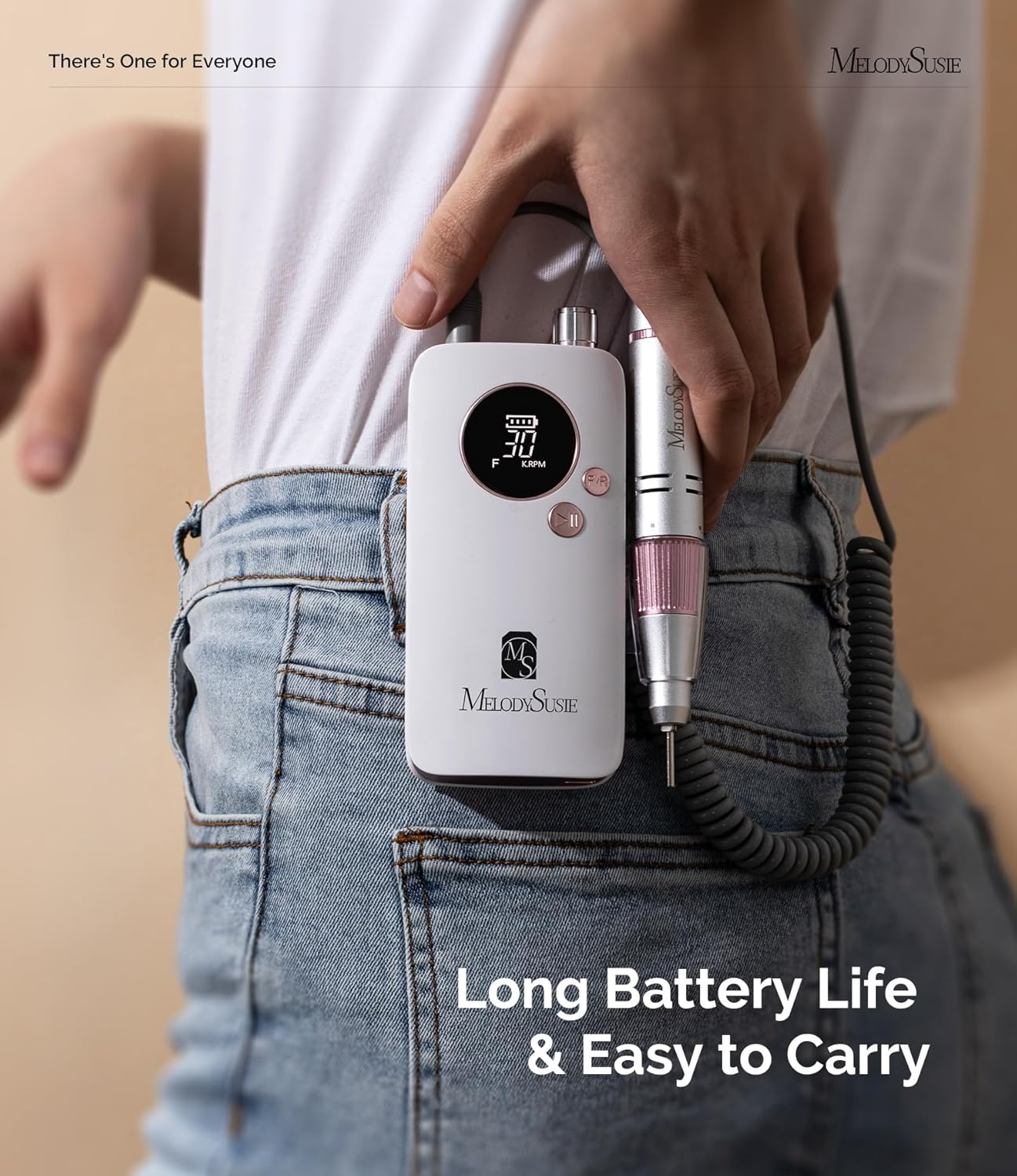MelodySusie Portable Nail Drill 30000 RPM,SC320F Professional Rechargeable Electric Nail File,Cordless Nail E File for Acrylic Nails Gel Polishing Removing,Efile Nail Kit for Manicure Salon Home,Rose
