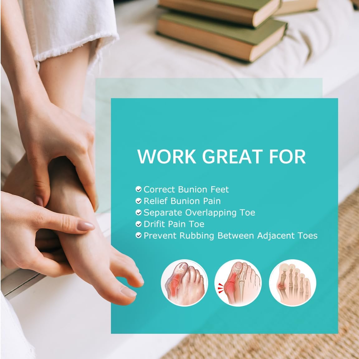 - Say Goodbye to Pain: If you are struggling with painful calluses, bunions, overlapping toes or other foot issues, these bunion relief pads are a simple and effective solution to relieve pain and correct your toes to prevent further discomfort. Our corrective toe spacers are universal and can be used as toe spreaders for women or toe separators for men!