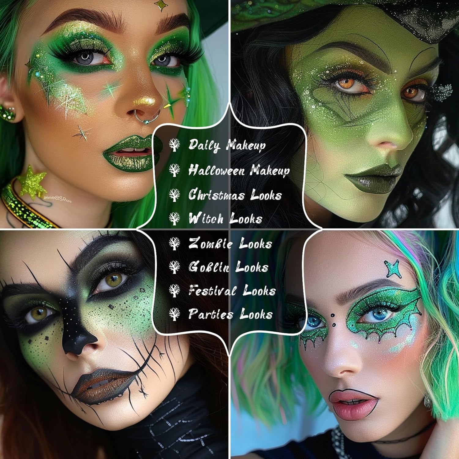 UCANBE Green Eyeshadow Makeup Palette, 15 Colors Bright Dark Green Shimmer Matte Metallic Glitter Eye Shadow, Forest Emerald Lime Pallet Kit for Cosplay Parties Christmas Halloween SFX