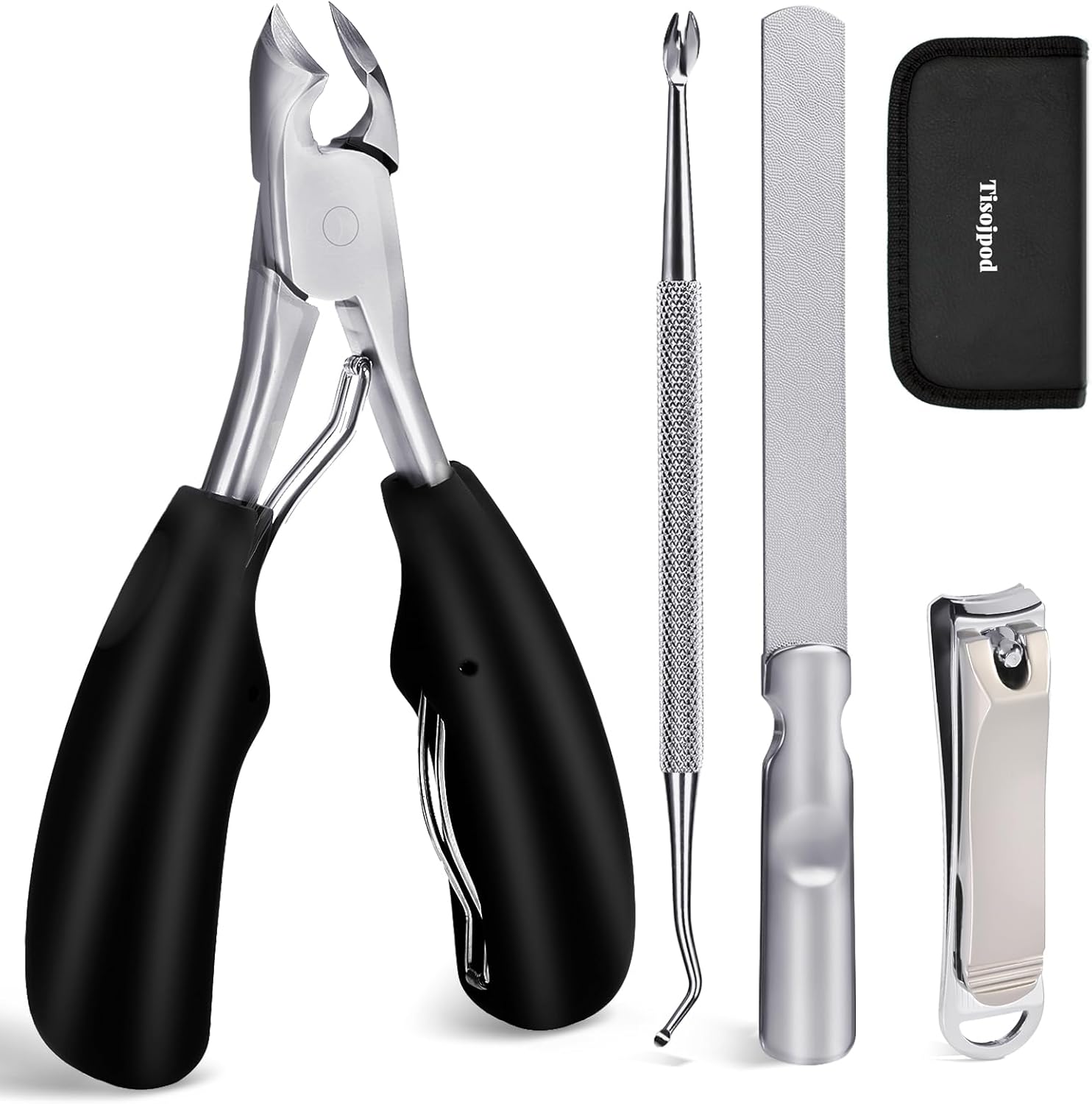 - Perfect present:In addition to the toenail clippers for thick toenails,this nail clippers set also comes with 3 practical nail care tools for daily maintenance of both hand and foot nails.They are designed to remove dead skin,clean dirt from nail crevices,and polish nails.Owning the Tisojpod Toenail Clippers Set simplifies nail care effortlessly!Furthermore, it includes a leather storage bag for convenient portability.It's perfect as a birthday or Christmas present for men,women,oneself,family,friends,or seniors. It's a high-end and practical present or household essential.