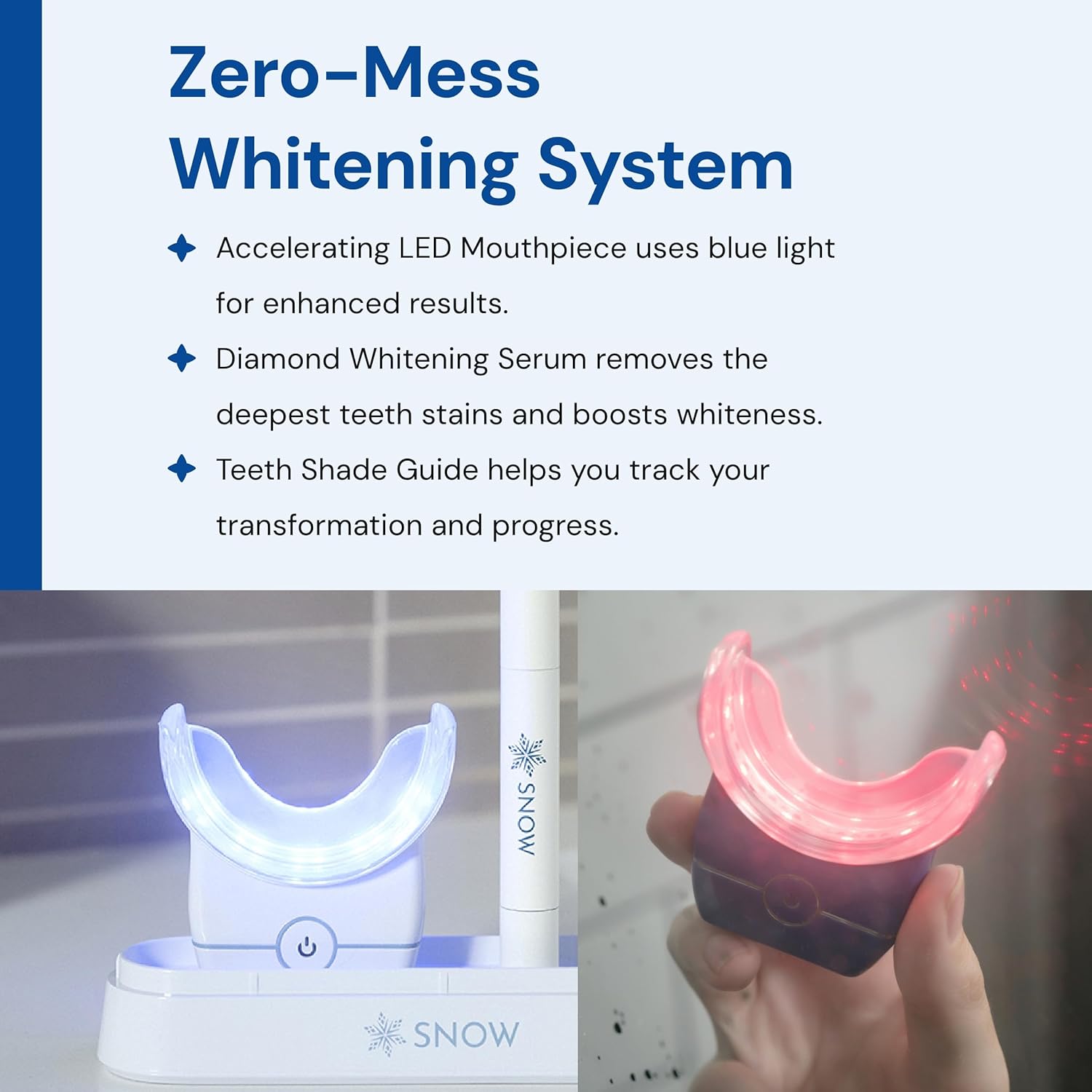 - Gentle on Sensitive Teeth, Tough on Stains: Specially formulated for sensitive teeth and gums, the Snow Diamond whitening system helps remove stains from coffee, wine, and more—helping you achieve a brighter smile without discomfort.
