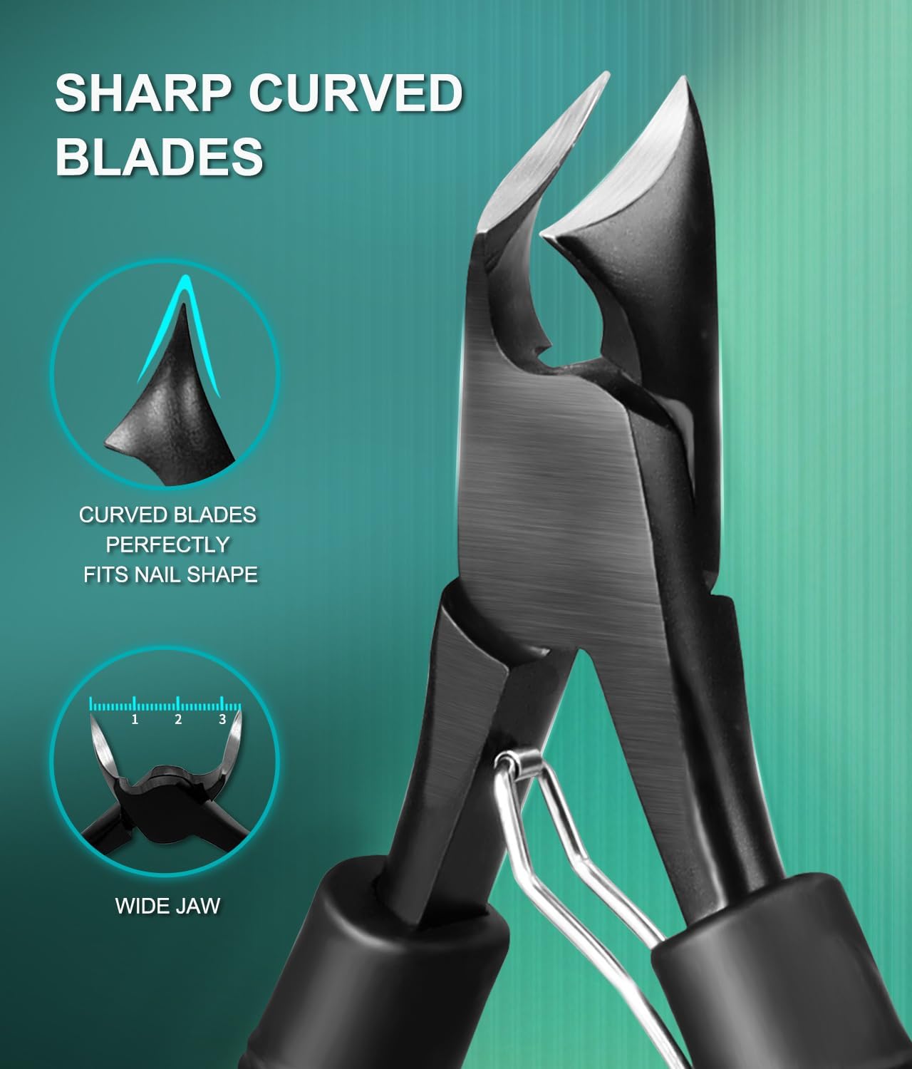 - 【Nail Clippers For Thick Nails】You can easily cut any extremely thick toenail or fingernail with ingrown toenail 0.4In natural opening(up to 1.3in). 25°nail shape curved blade especially for thick nails, ingrown nails, and paronychia nail situation; ideal nail trimmer kit for everyone, perfect for elderly, athletes, arthritic, podiatrist, men, women, seniors.