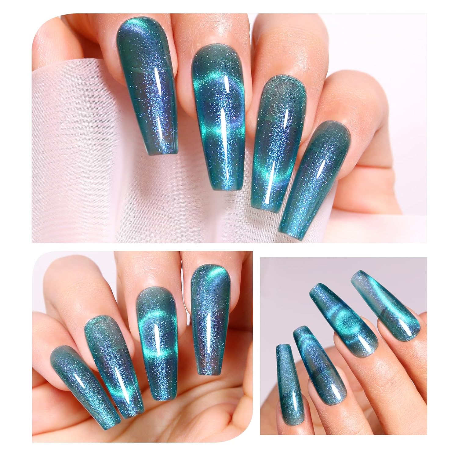 Imtiti Aurora Cat Eye Gel Nail Polish, 15ml Galaxy Cyan Blue Holographic Glitter Cat Eyes Magnetic UV Soak Off Gel Nail Polish with Magnet Set