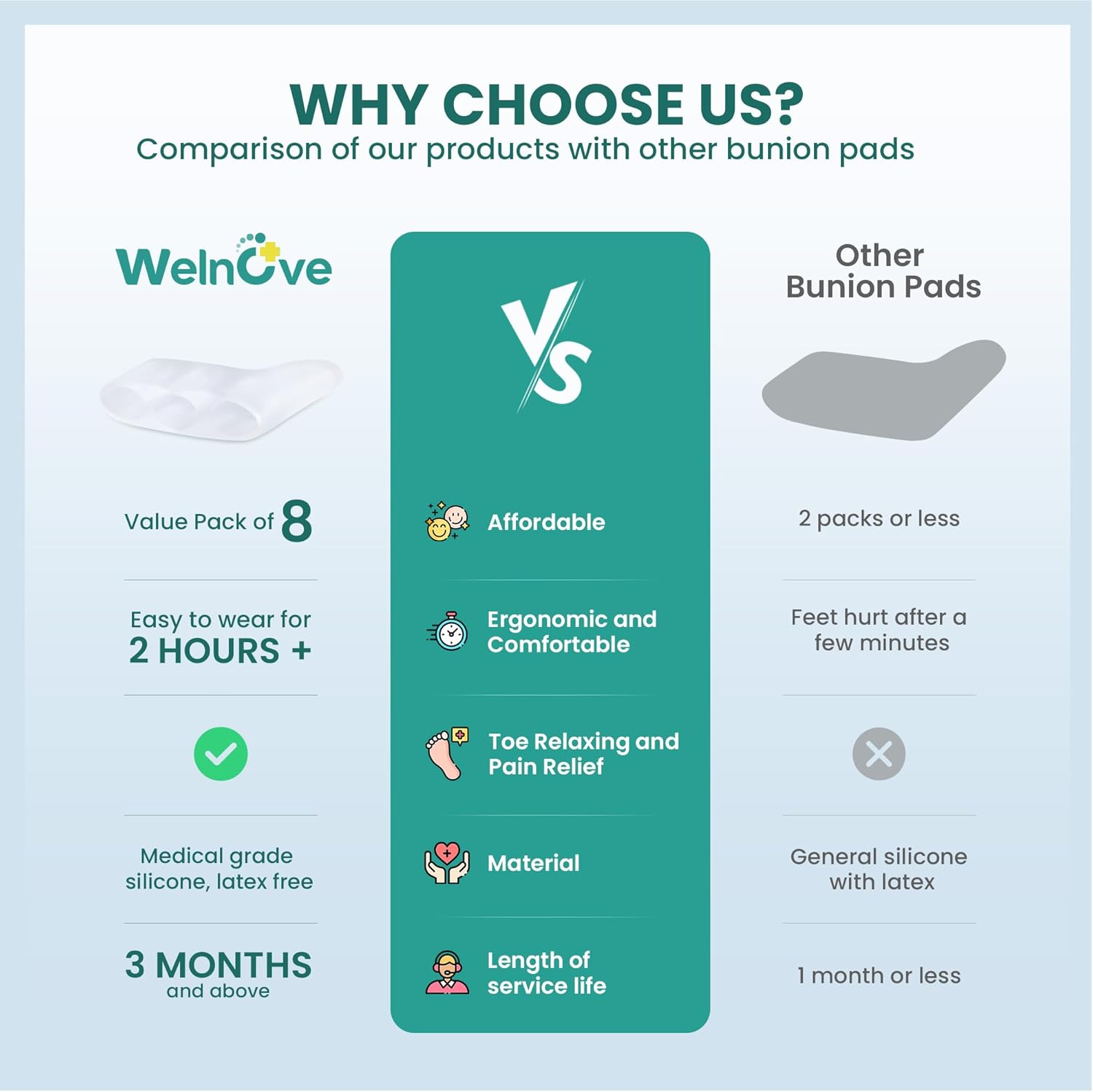 Welnove Gel Pinky Toe Separators - 8 Pack Pinky Toe Spacers, Bunion Cushions Pads for Women&Men, Silicone Little Toe Protectors for Preventing Rubbing & Relieve Pressure(Clear)