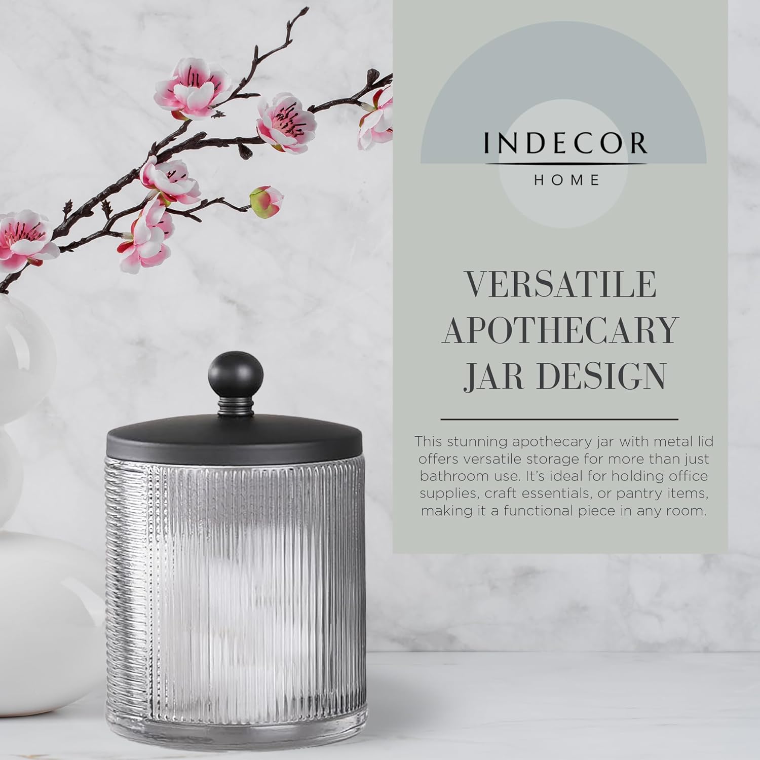 - VERSATILE APOTHECARY JAR DESIGN - This clear apothecary jar with metal lid offers versatile storage for more than just bathroom use. It’s ideal for holding office supplies, craft essentials, or pantry items, making it a functional piece in any room.