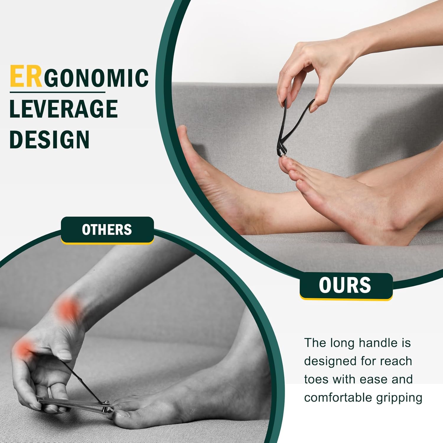 - 🎁Easier Trimming, Less Bending - Experience easy toenail trimming with the uniquely arched shape of FVION nail clippers. With the innovative curved head design nail clipper, you do not need to contort your body just to cut your toenails. Less bending, more comfort!