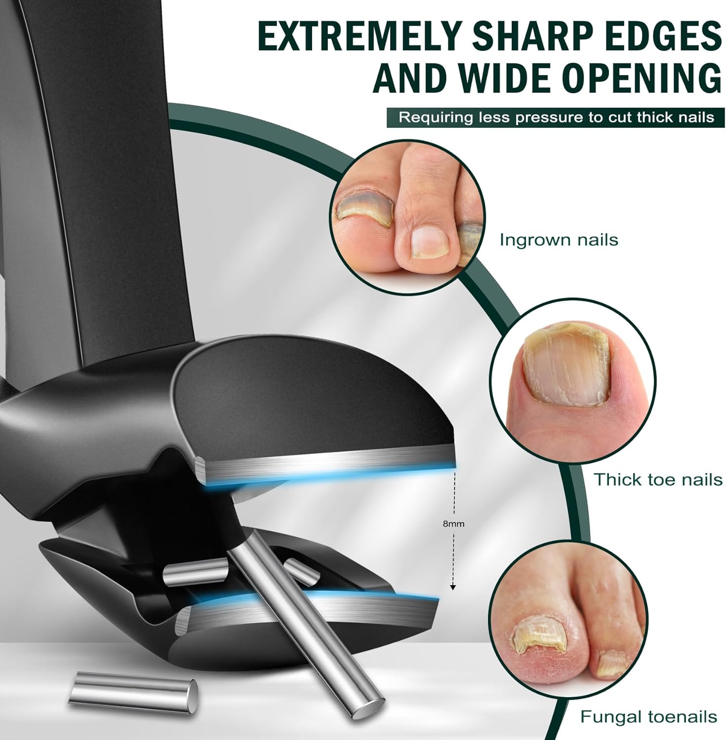 - 🎁Thick Nails, No Problem - Thick nails can be a common issue, but FVION toenail clippers are up to the task. The exceptionally sharp blade and wide jaws take on the thickest, most stubborn nails with ease. Say goodbye to the frustration of struggling with stubborn nails.