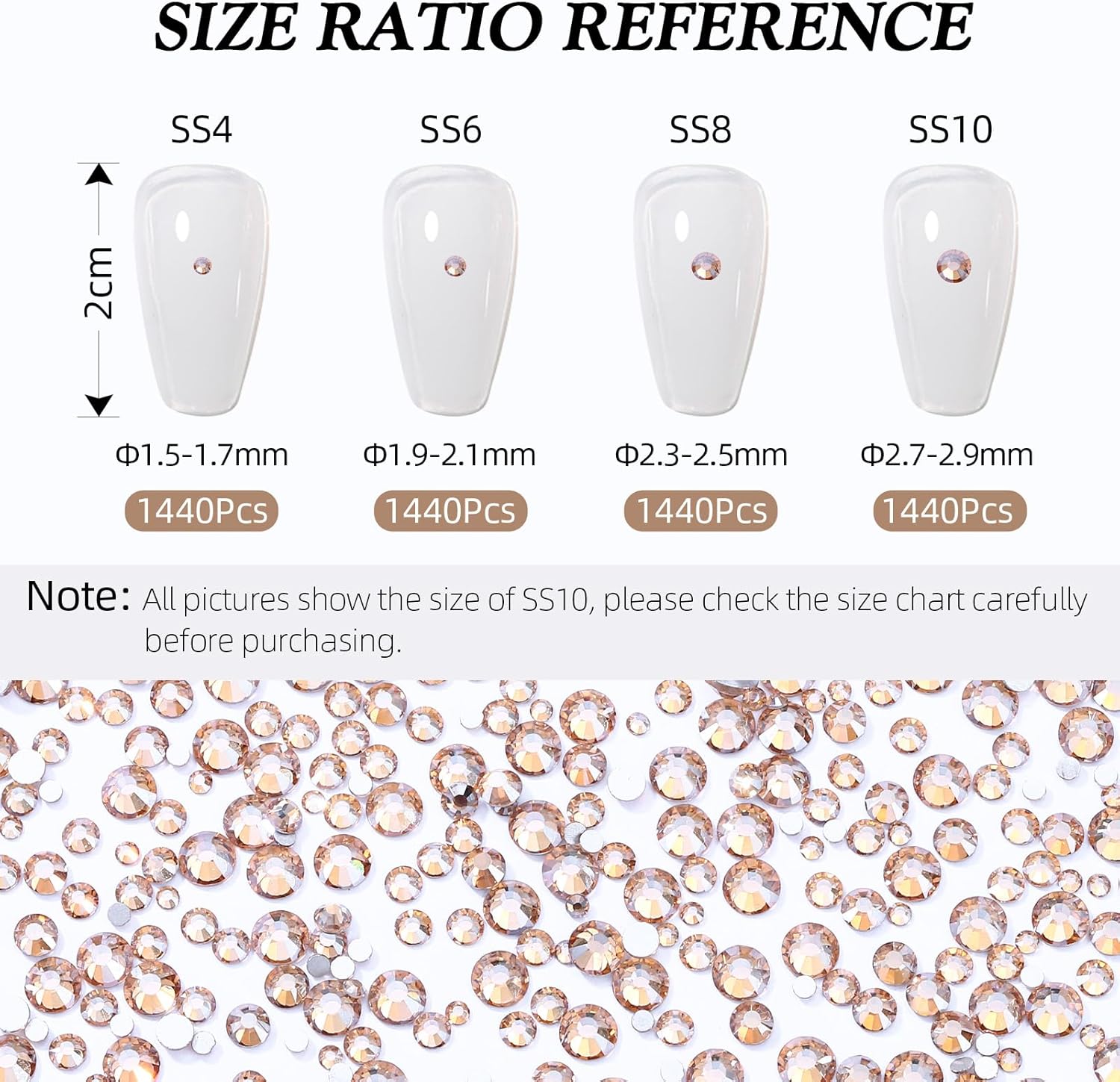 Gold Shadow Flatback Rhinestones, Glass Rhinestones for Nail Art and Craft, Glue Fix, Loose Crystal Gemstones(Gold Shadow, SS6, 1440pcs, 1.9-2.0mm)