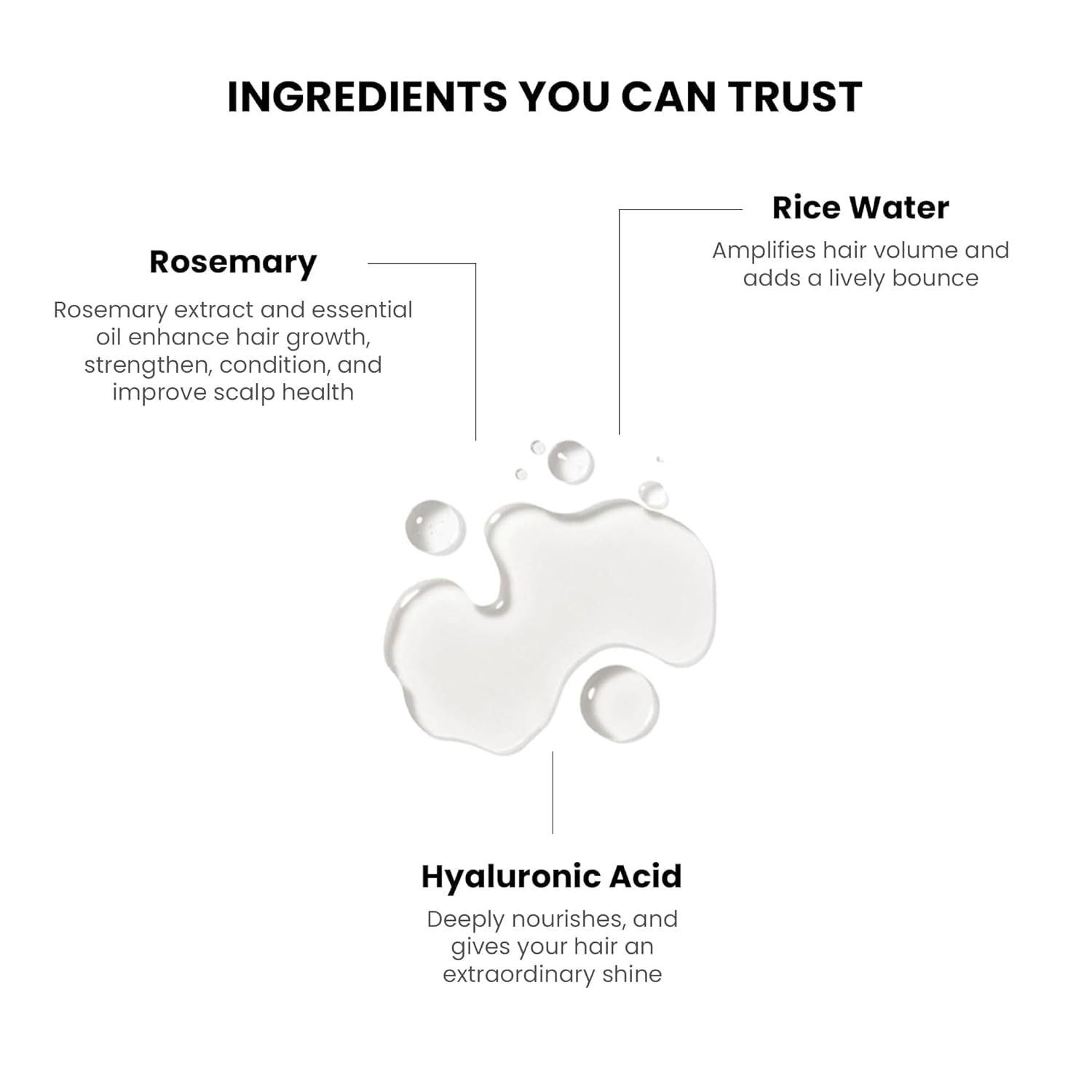 - Enriched with Rosemary & Rice Water – Infused with rosemary water, this hair care mist enhances your routine with its botanical-rich formula. The addition of rice water and hyaluronic acid helps maintain moisture balance, keeping your hair feeling fresh and healthy-looking. Use it daily for an instant hydration boost.