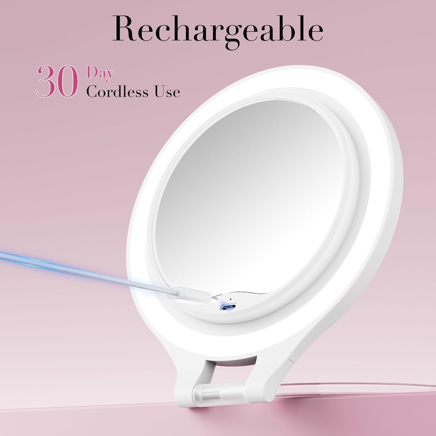 - 【Double-sided Lighted Mirror with 10X/1X Magnification】Discover flawless beauty with our Dual-Sided LED Makeup Mirror. Featuring LED lighting and a 10x magnification side,it is perfect for precise makeup application, eyeliner, mascara, lipstick, and grooming.Ensure every detail is perfect with ease.
