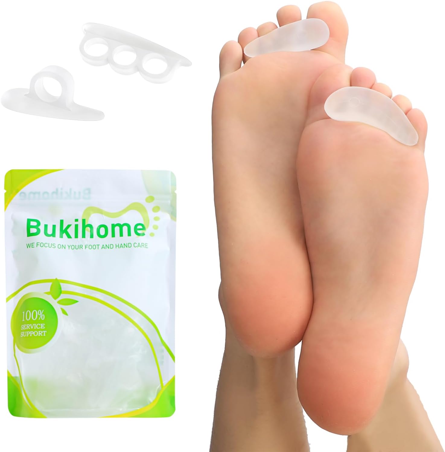 Bukihome Hammertoe Corrector Gel Toe Straighteners - 12 pcs Support Crest for Women & Men - Realign Bent, Crooked, Curled, Claw, Hammer Toes - Clear,Multi-Size