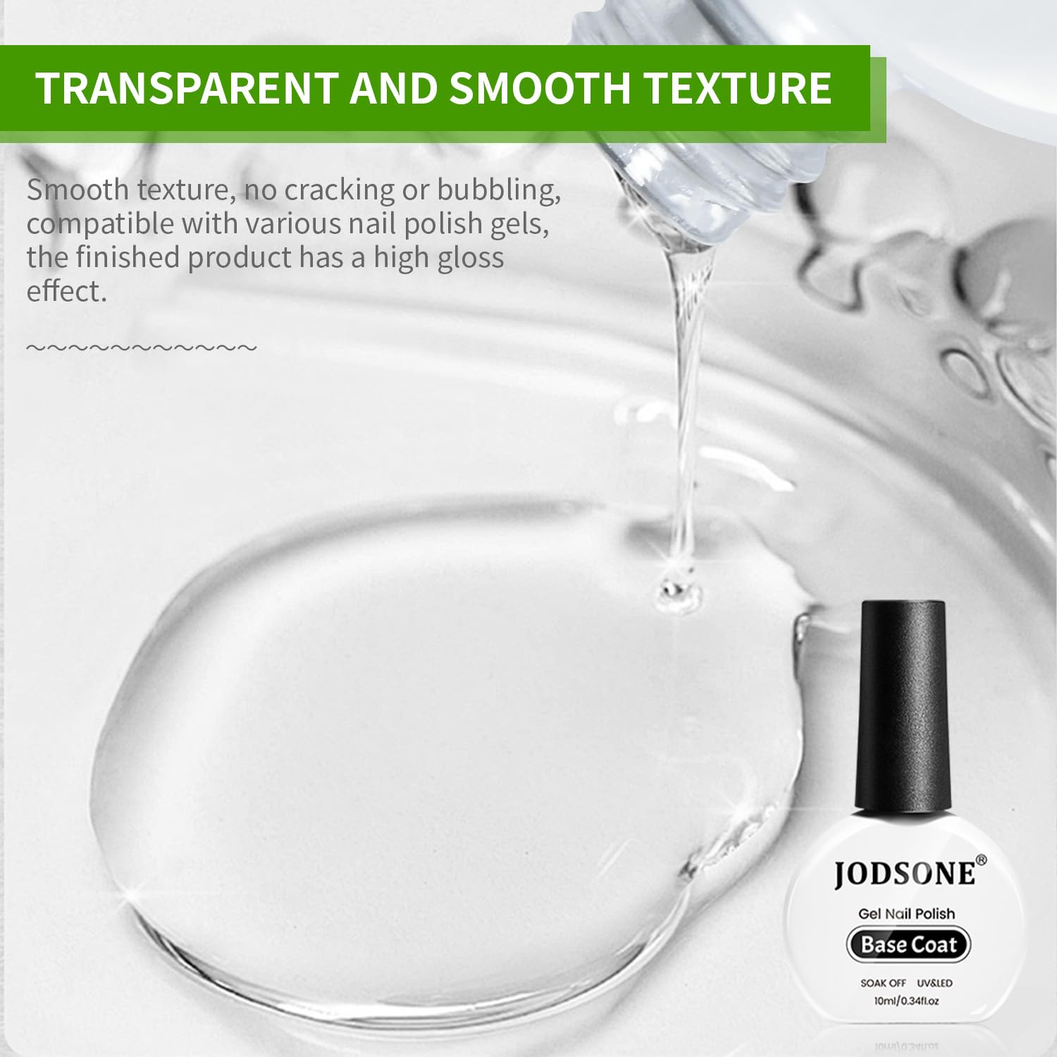 JODSONE 2 Bottles 10ml Of Top Coat Base Coat Gel Polish Set Bright Surface At Home DIY Nail Salon Girl Gift, transparent
