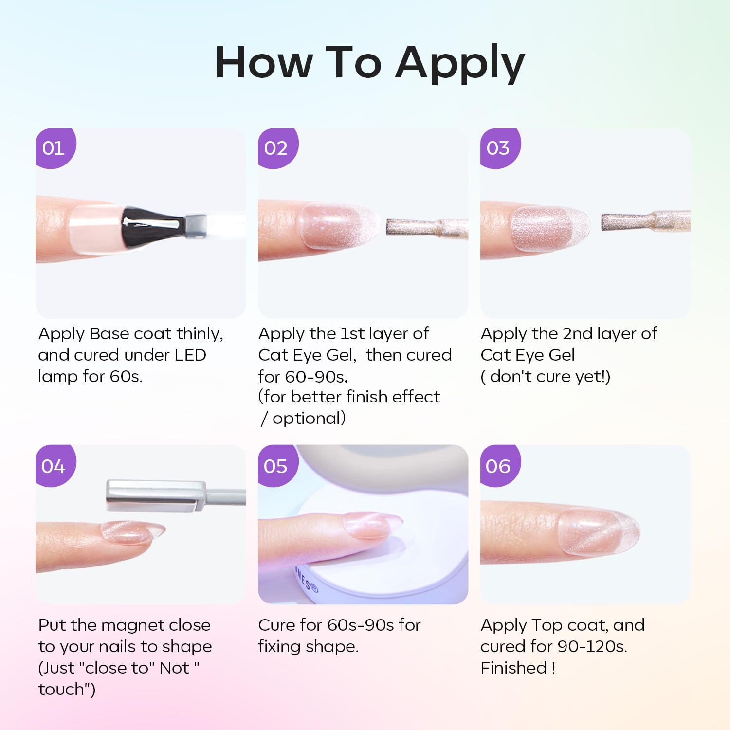 - Included Components : 1* Cat Eye Gel + 5* Color Jelly Gels + 1* Double-Heads Magnet