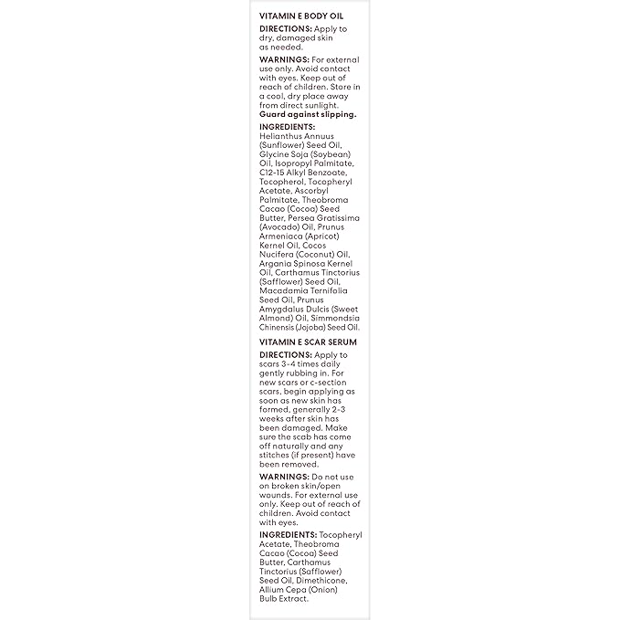 - Multi-Purpose Body Skin Care Products: Palmer's Vitamin E Skin Healing Kit addresses various concerns. The Body Oil nourishes dry skin, the Scar Serum improves scar appearance and the Concentrated Body Cream offers intense spot hydration for dry patches