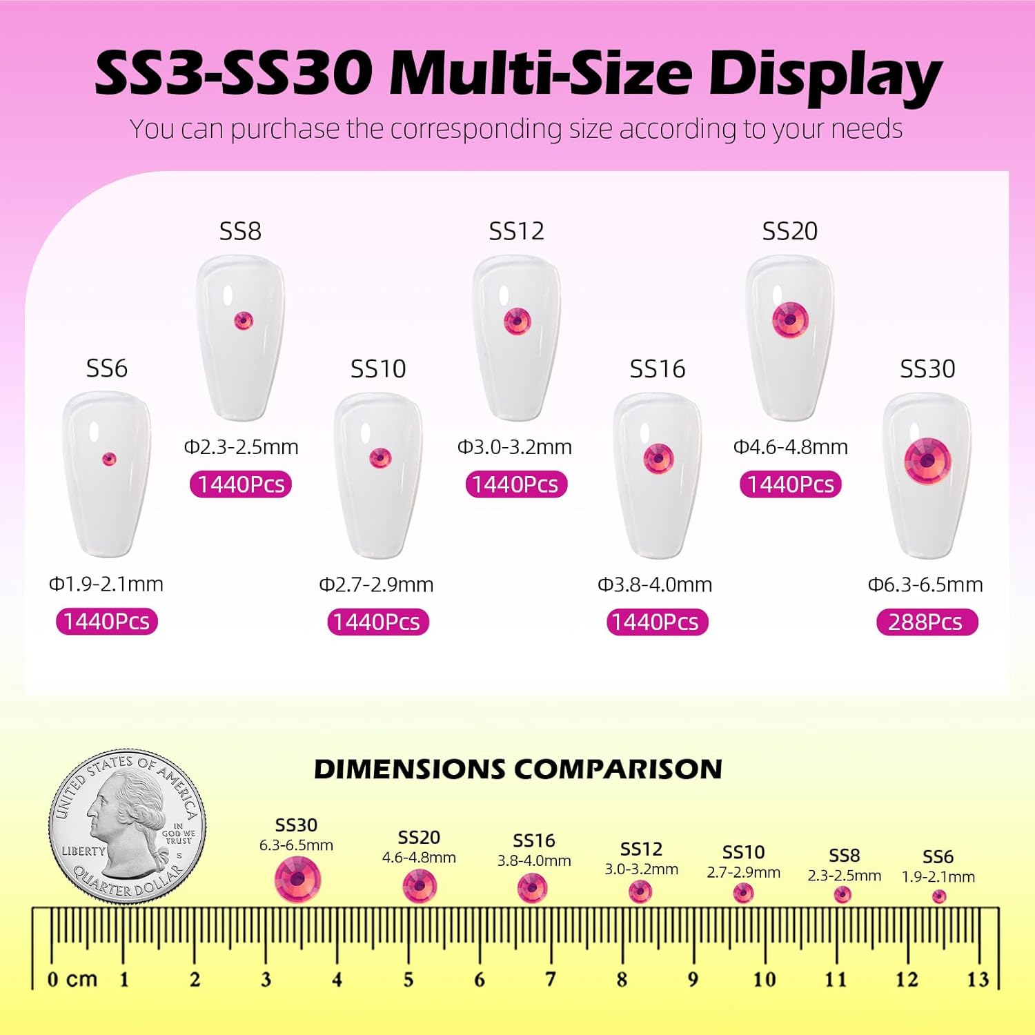 - Material: Glass/Artificial Crystal, Flat Back Round, High-precision cross-section, multi-sided cutting, high brightness, high Sparkly