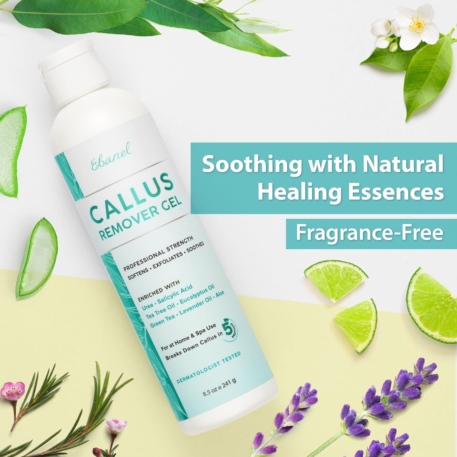 - Soothing & Restorative Pedicure Foot Care - Enriched with Tea Tree Oil, Eucalyptus Oil, Lavender Oil, and Green Tea, this foot softening treatment calms irritation, soothes tired feet, and promotes healthier-looking skin. Regular use restores foot health, enhances skin texture, and improves overall appearance. This calloused feet remover gel tool is designed for all skin types and leaves feet refreshed with a subtle lavender scent