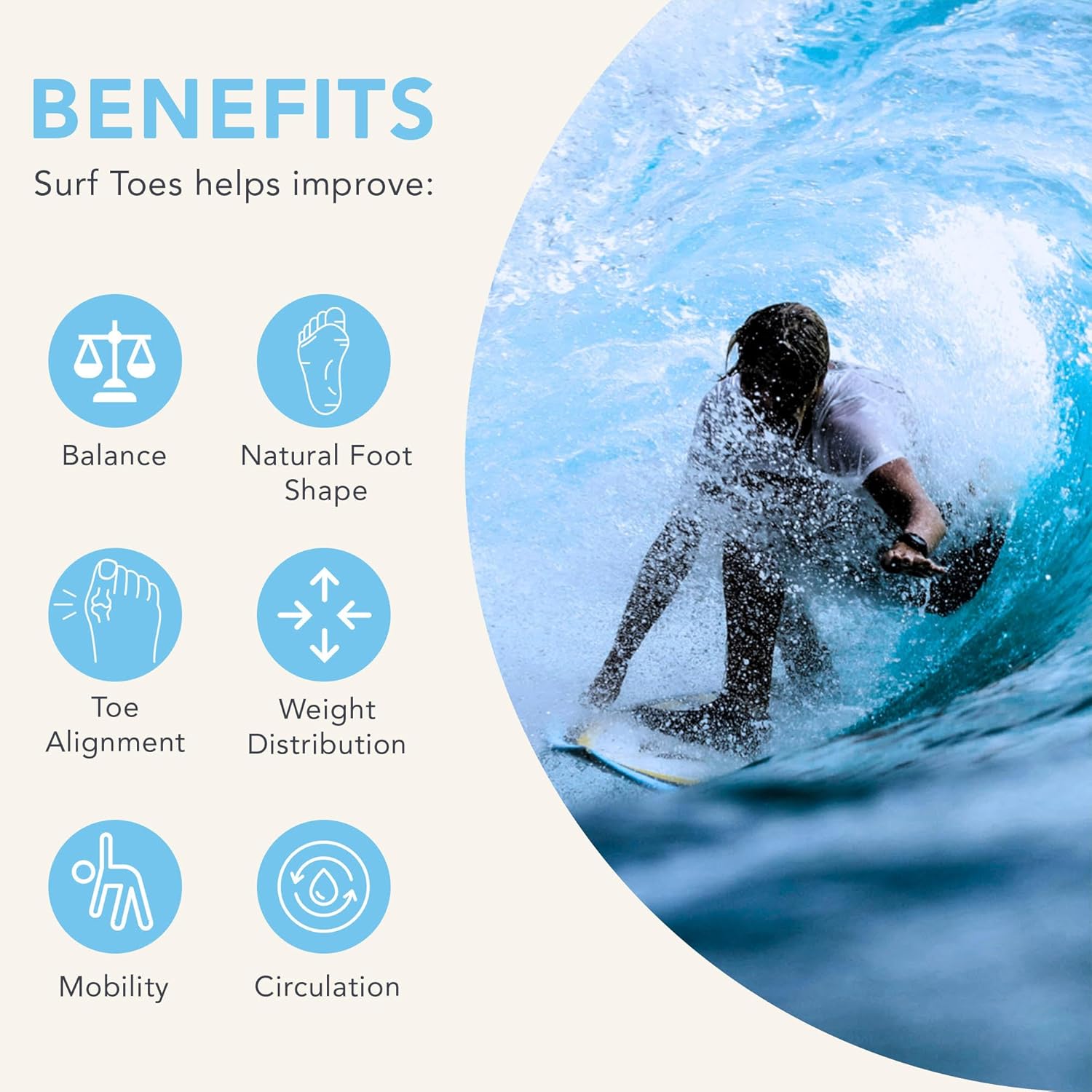 - Enhances Foot Shape: Surf Toes are premium toe spacers designed to help you improve balance and restore your feet to their natural shape. Designed to correct curled toes, bunions, and hammer toes for naturally aligned feet. By gently realigning your toes, Surf Toes promote enhanced mobility and circulation, helping to improve overall foot health.