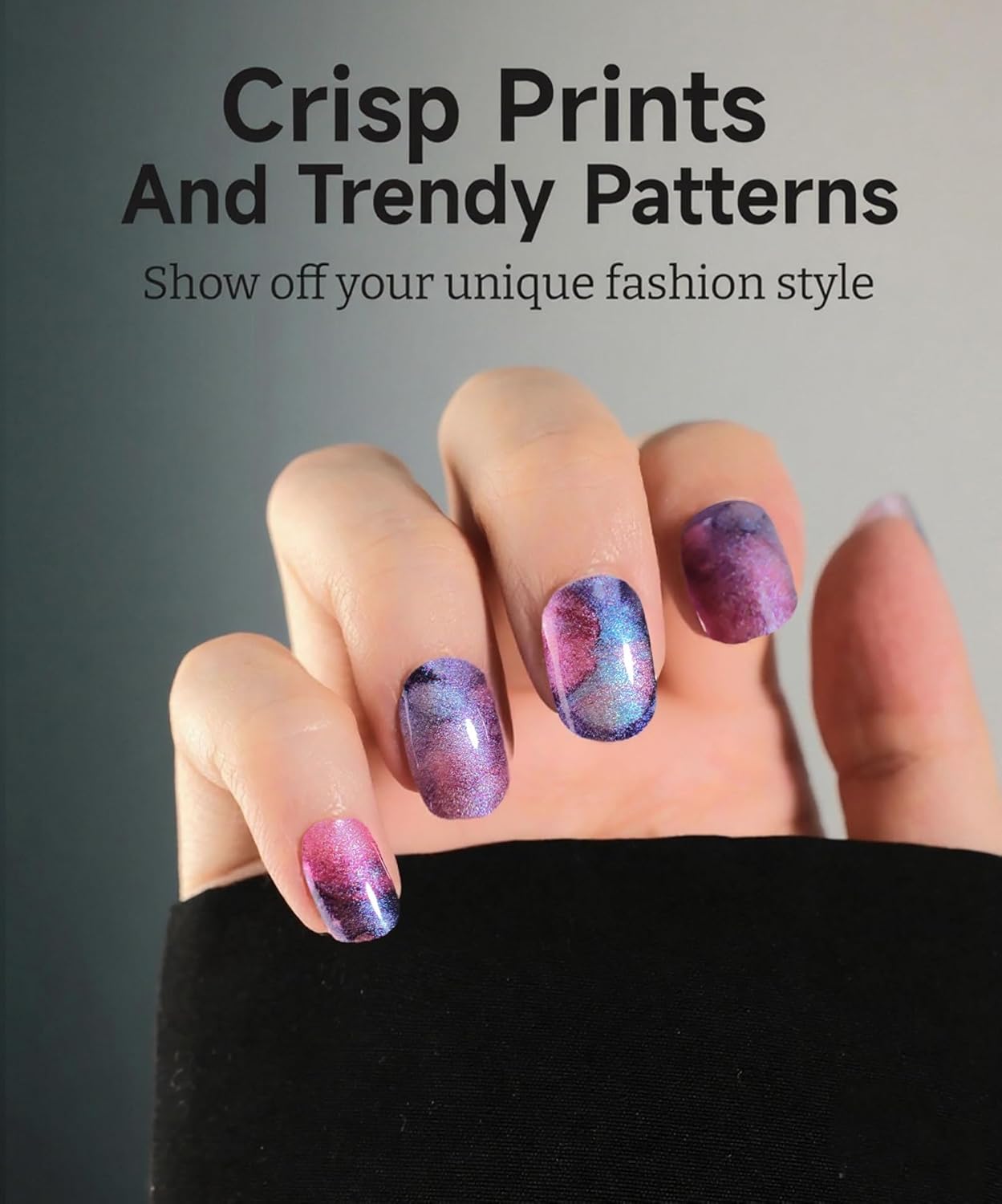 - [DESIGN]: Explore our exclusive designs, our nail stickers with crisp prints and trendy patterns. Each nail sticker is meticulously crafted to ensure vivid details and vibrant colors that will set you apart from the rest and show off your unique fashion style. Enhance your look with distinctive, eye-catching designs!