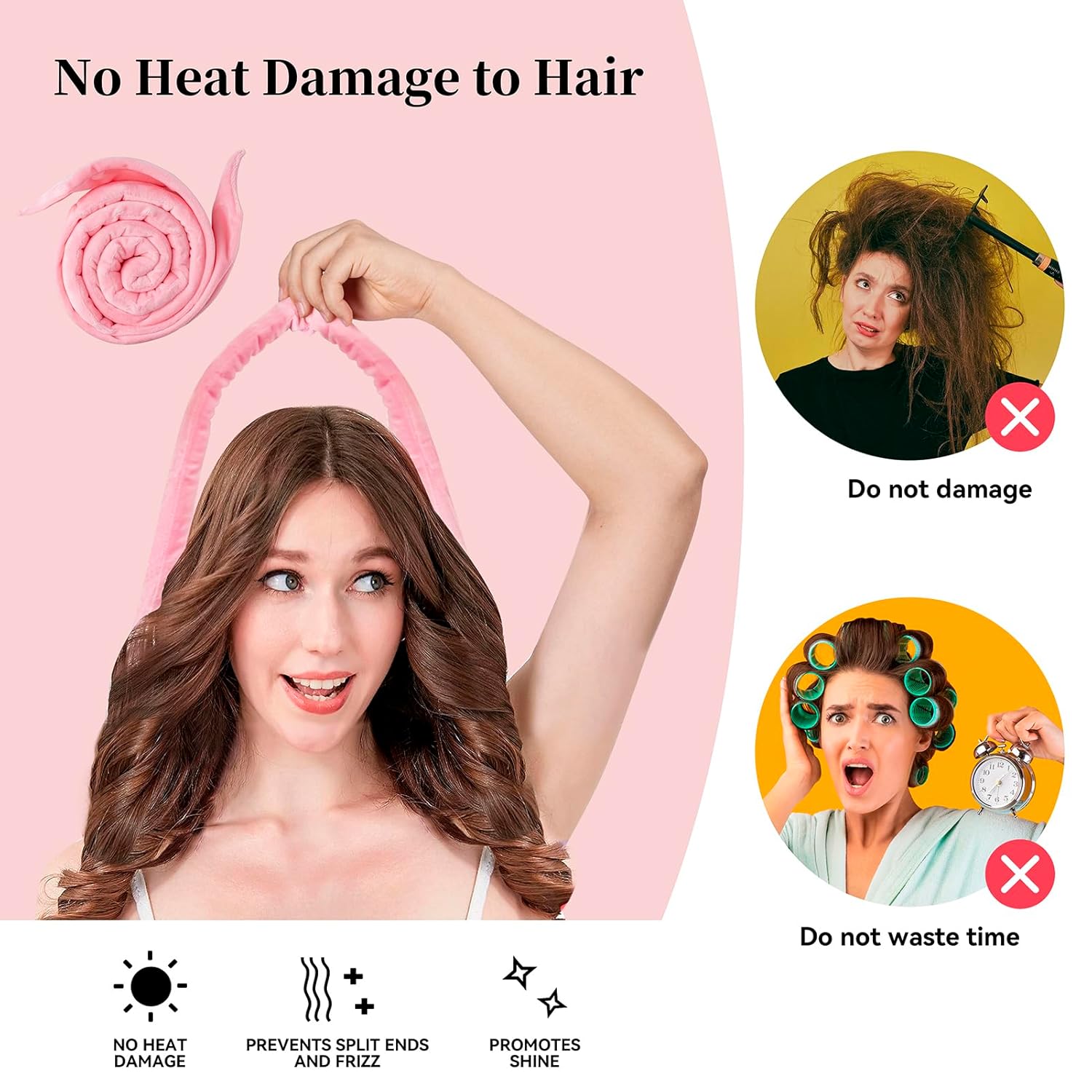 - Heatless curler is to give you a new way of curling your hair created to get beautiful bouncy curls without damaging your hair with heat. The rounded edges and smooth surface will not pull or damage your hair, this heatless curls headband is your best hair stylist