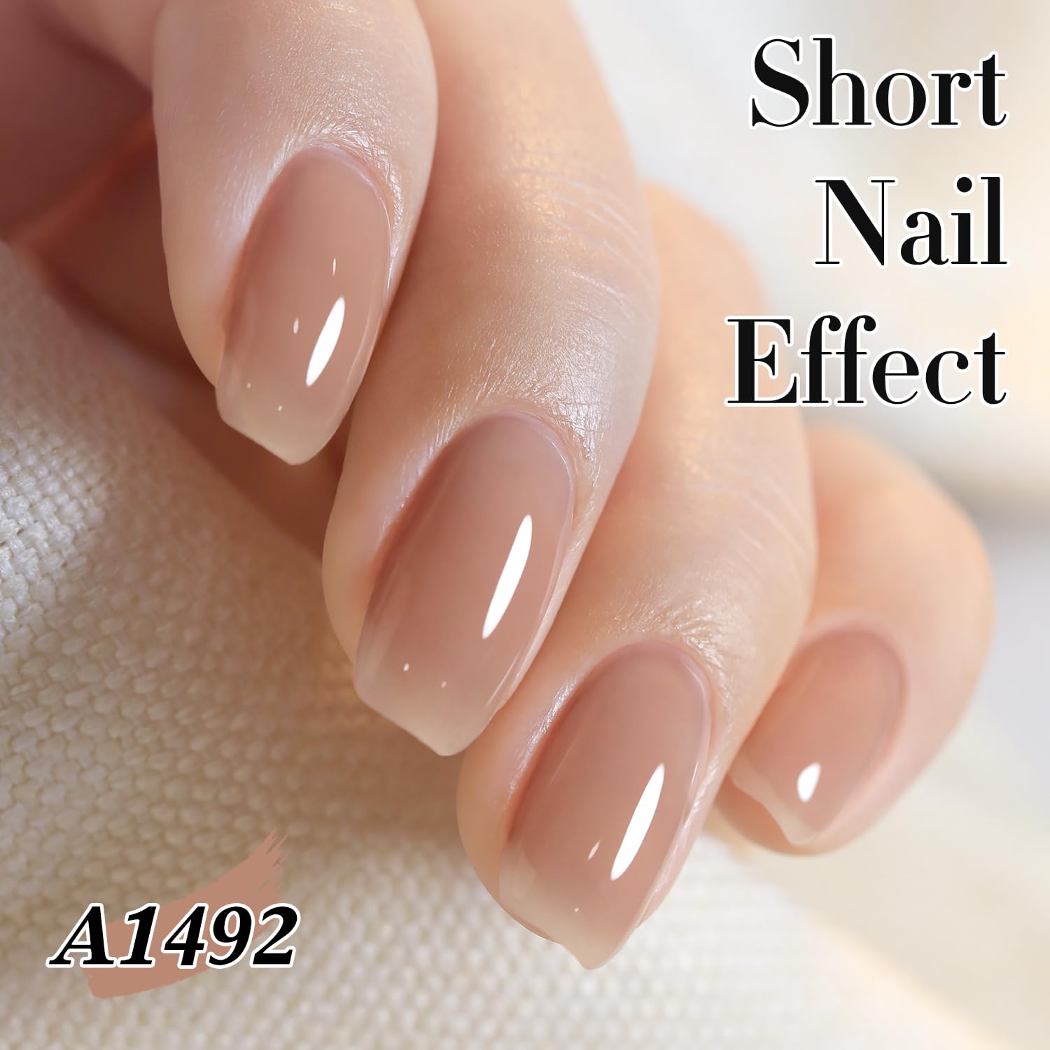 Double Rhythm Translucent Gel Polish Sheer Neutral Natural Light Milky Same Color Same Bottle 15ML Jelly UV Polish Nail Art DIY at Home (Jelly Nude Brown-A1492)