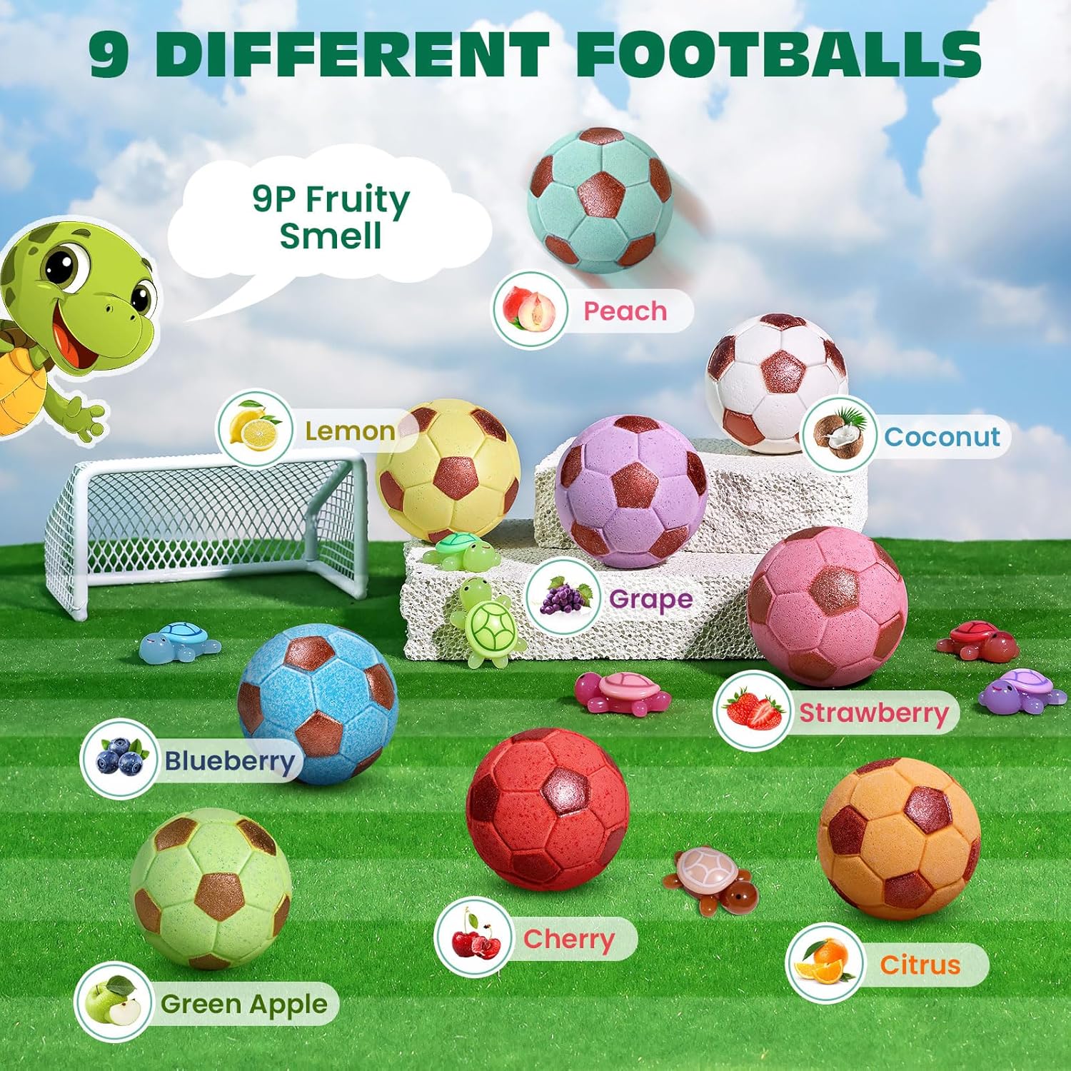 Bath Bombs with Surprise Toys Inside, Soccer Gifts for Kids Boys Girls, 9 Kids Bath Bombs Gift Set, Handmade Nature Bubble Bath Fizzes Bomb, Birthday Gifts for Kid