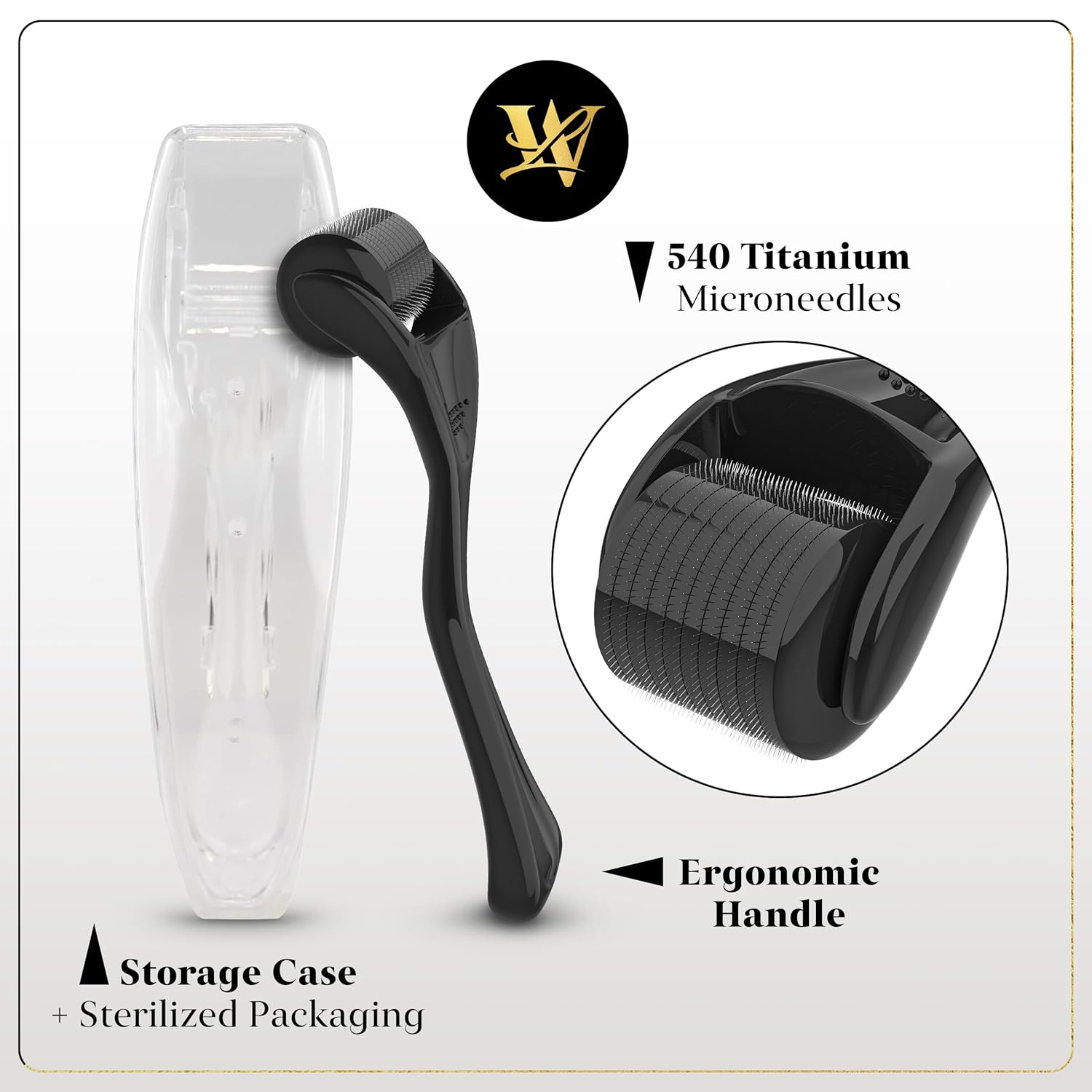 Derma Roller for Skin, Hair & Beard – Women and Men Titanium Microneedling Roller for Face & Scalp, Safe & Easy to Use - Jet Black