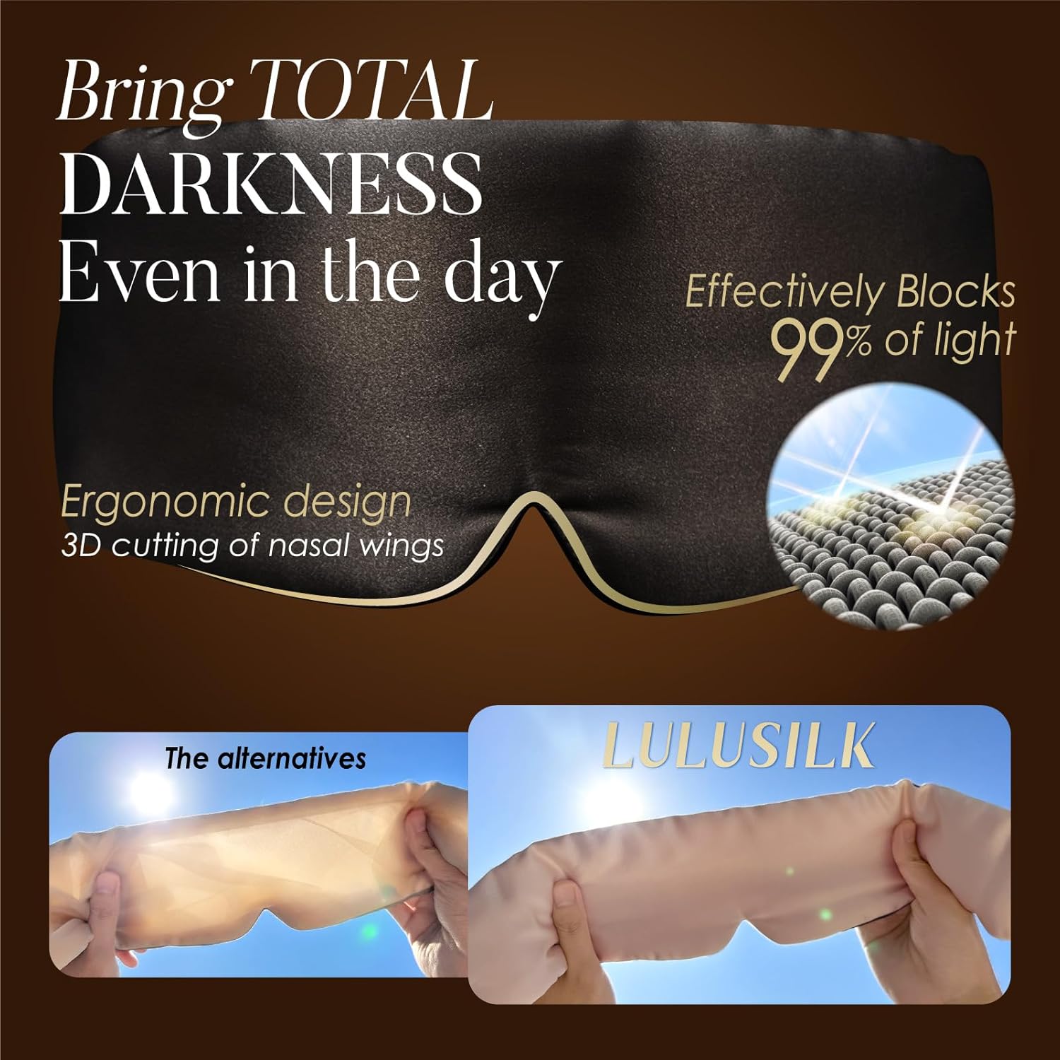LULUSILK Reversible Mulberry Silk Sleep Mask for Women and Men, Adjustable Real Silk Eye Mask for Sleeping, Black, Pack of 1