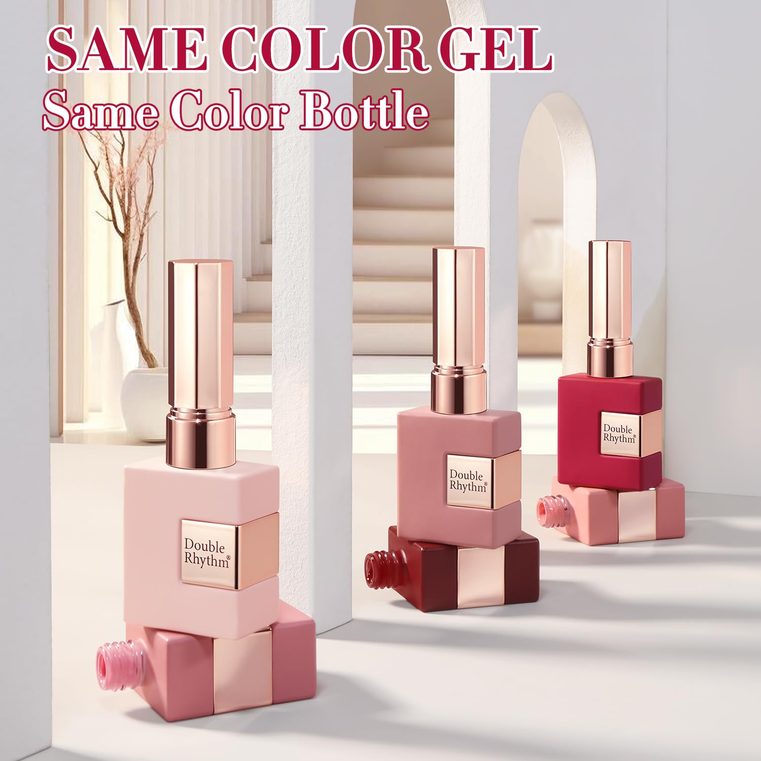 Double Rhythm 6 Pcs 15 ML Gel Polish Set Same Color Same Bottle Soak Off Gel Polish Kit Nail Art Manicure Salon DIY at Home for Women (Burgundy Red Nude Pink Purple Beige-T6-3)