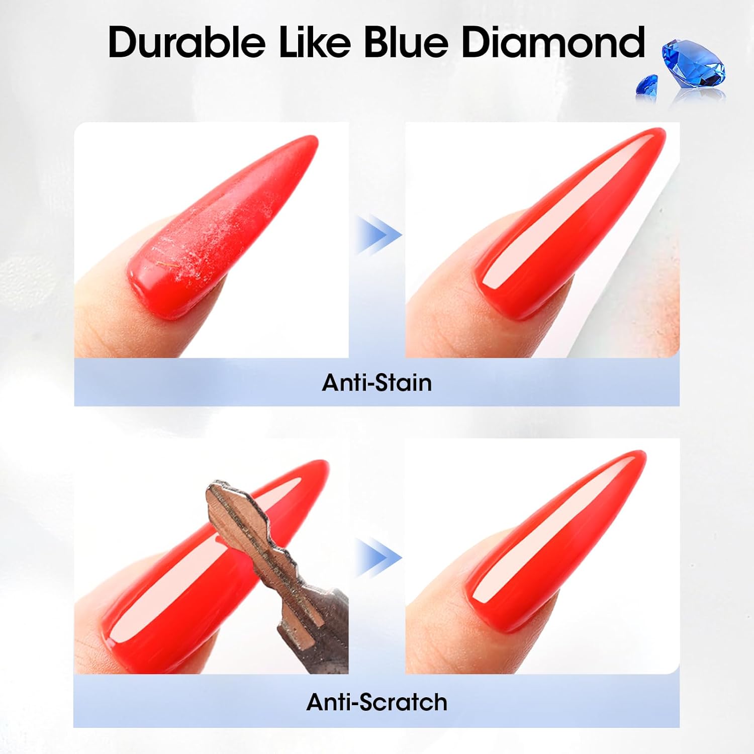 - Superior Performance: Gellen’s Blue Diamond Builder Top Coat has a light blue tint but is highly translucent and non-fluorescent, allowing the underlying color of your gel polish to shine through. Ultra-sticky construction that refuses to buckle; Diamond hardness, not easy to break; Moderate flow rate, easy to use.