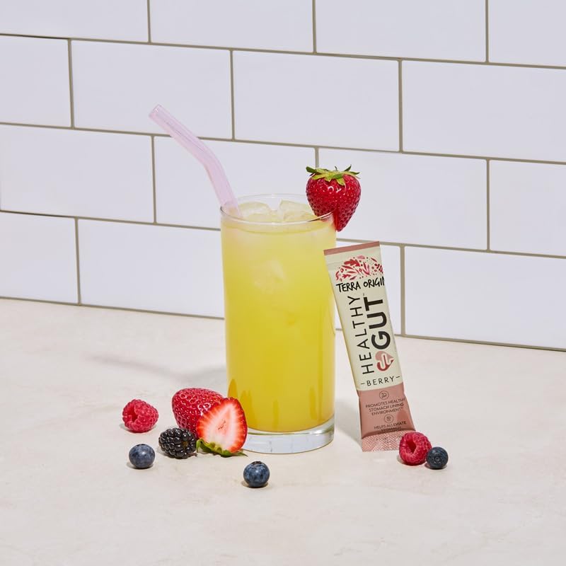 TERRA ORIGIN Healthy Gut Stick Packs, L-Glutamine, Slippery Elm, Aloe Vera, Licorice Root Extract, Gut Health, Digestive Support, Leaky Gut Repair, Immune Function, On-The-Go, 21 Ct, Berry