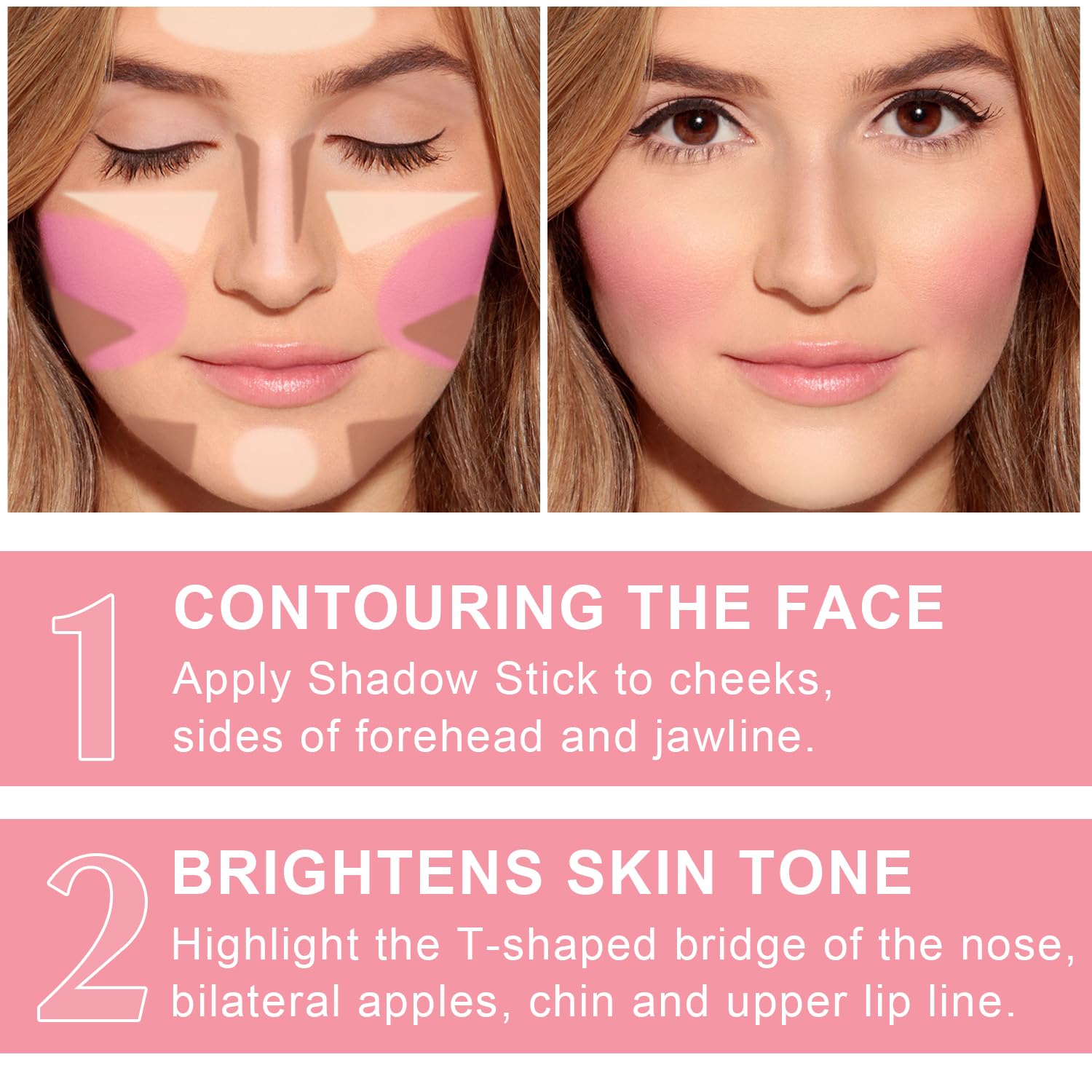 - 【Comes with Makeup Brush and Sponge】Our contour stick set comes with a premium soft double-ended makeup brush and sponge for blending stick cream, it can help improve your skin tone and face contour for a natural, glamorous look.
