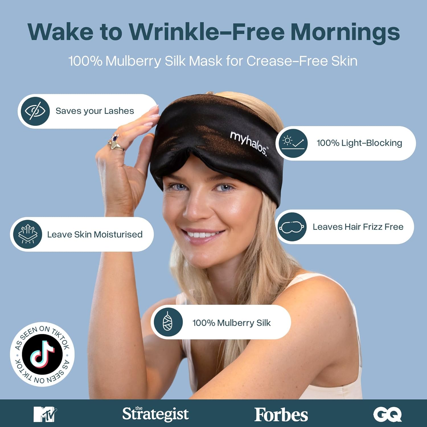 MyHalos 3D Mulberry Silk Sleep Mask for Women & Men with Cups, Blackout - Silk Eye Masks for Sleep Anywhere, Travel, Night, Face, Side - Eye Cover, Sleeping Mask, Eyemask, Sleepmask, Black
