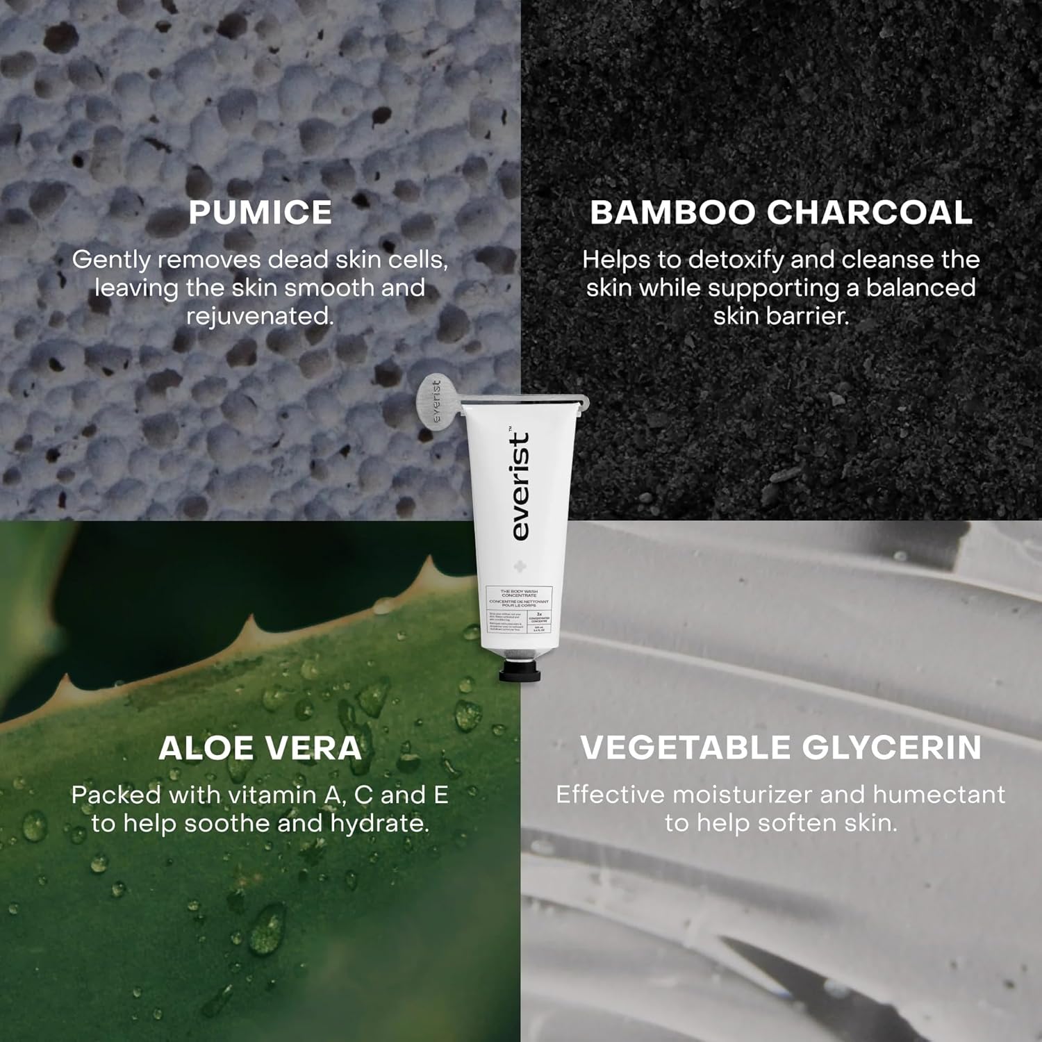 - EXFOLIATING BODY WASH CONCENTRATE: New formula contains bamboo charcoal particles and pumice to gently exfoliate skin and help reduce keratosis pilaris.
