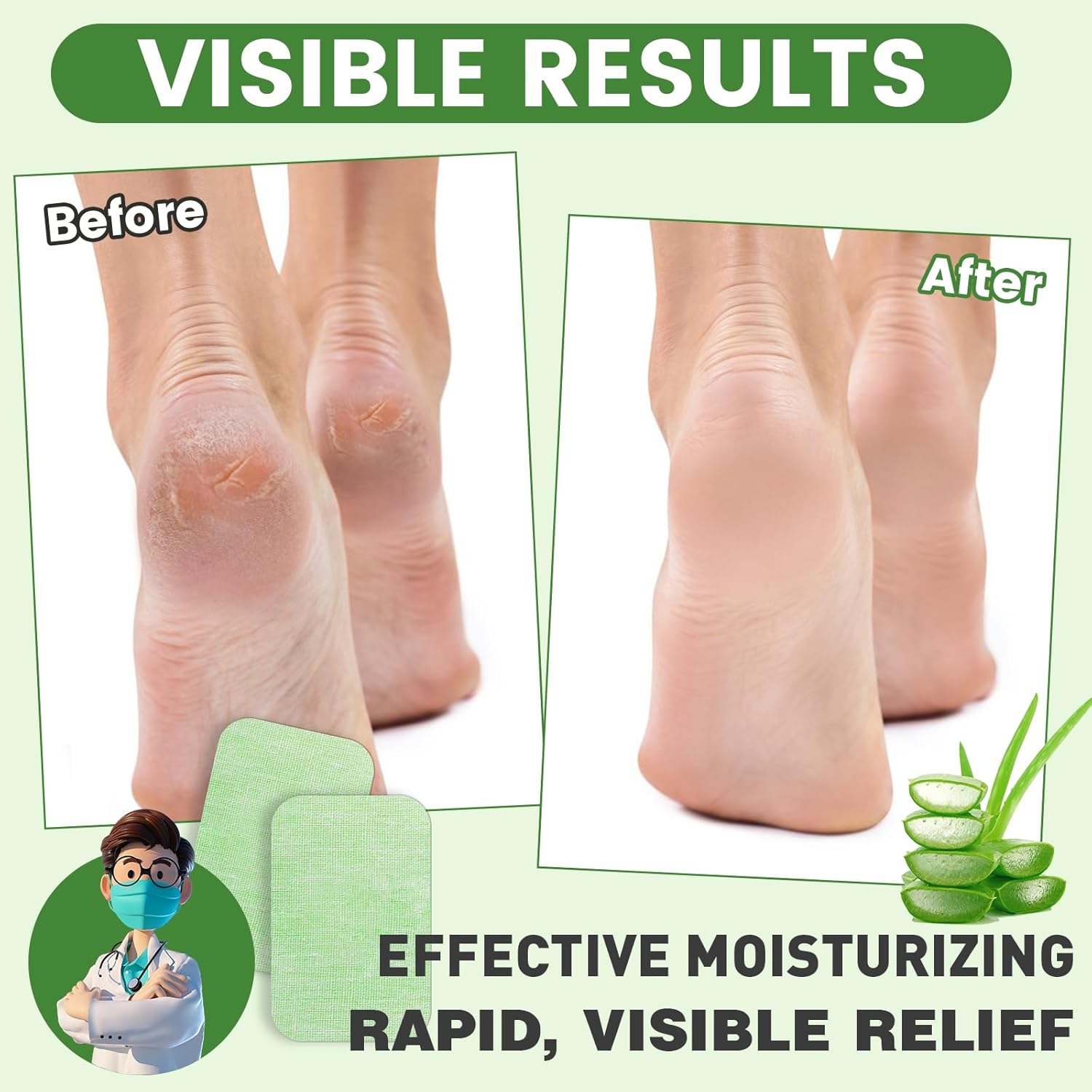 - 【Aloe Vera Extract】 Deeply penetrates the skin to deliver intense hydration and comprehensive repair, adeptly addressing the root causes of dryness and splits. The added aloe vera extract further enhances the moisture-retention capabilities of our patches, ensuring your cracked heels receive the deep nourishment they need to heal and recover.