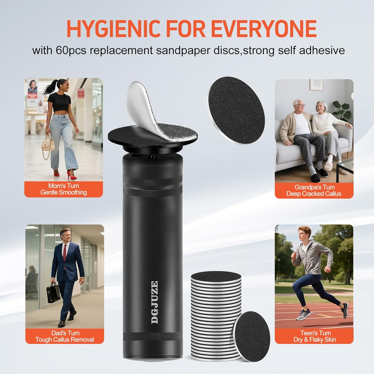 - Designed with a metal body for durability,:this electirc foot file is built to last 60pcs replaceable sandpaper discs ensure clean and hygienic, one person one disc,making it a cost-effective solution for all calluses, corns, and dry skin.