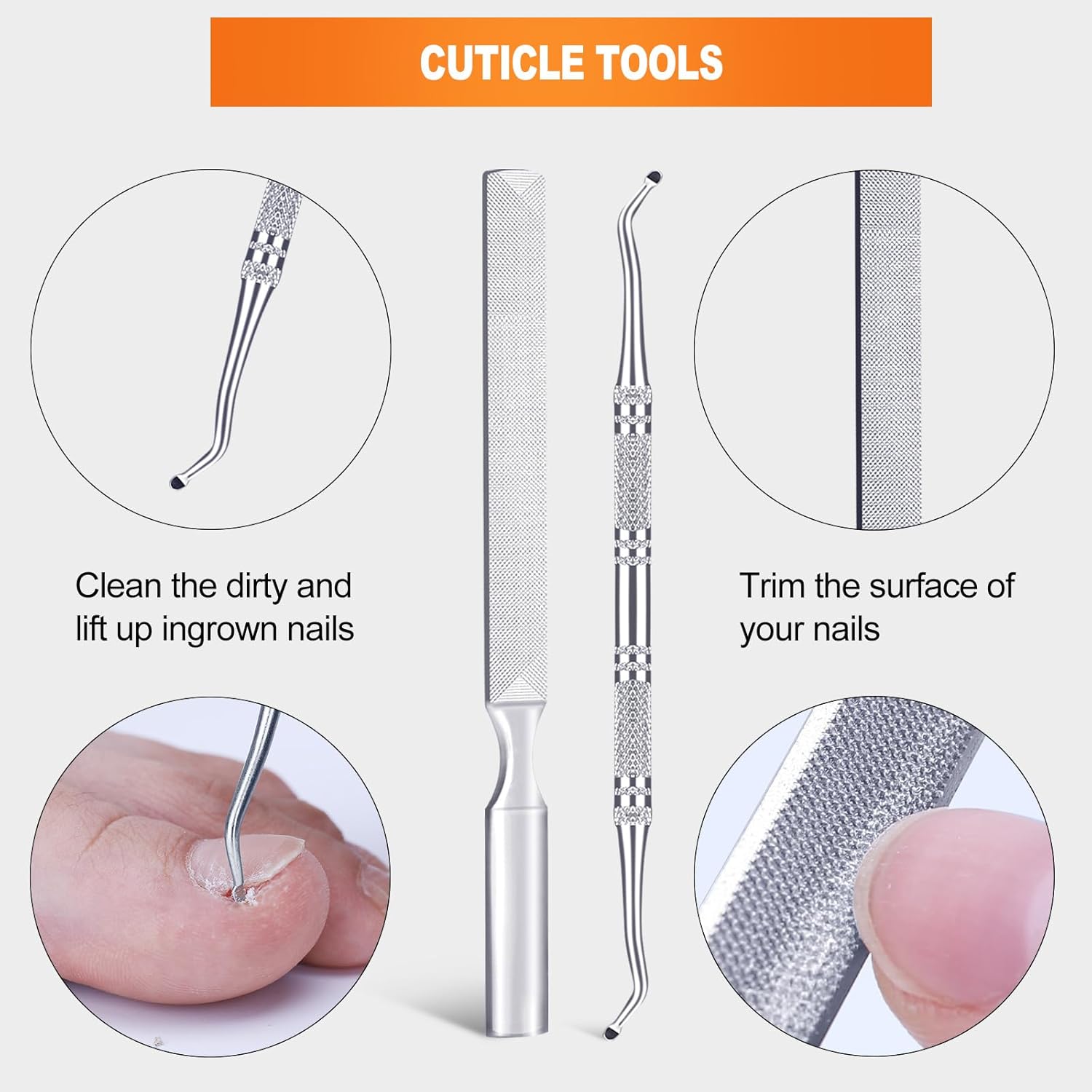 - 【Waterproof,Anti-Rust and Anti-Breaking】Our toenail clippers set is made of high quality stainless steel, waterproof, rust-proof and break-proof, the handle is made of ABS material, the curvature of the handle is ergonomically designed, comfortably soft and non-slip, reducing the stress on the hand, toenail clippers perfect for the elderly and arthritis, diabetes patients.