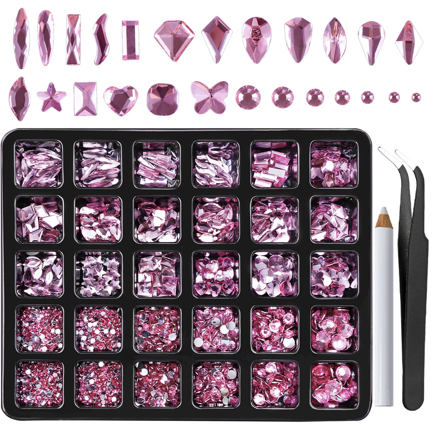 - Create Your Wonderful DIY Design - 18 different stylish shape nail jewels and 2720 pink rhinestones. Each size or shape nail art rhinestones have separate compartment, which is very useful for your classification and prevents mixing. Just enjoy your rhinestones for crafting.