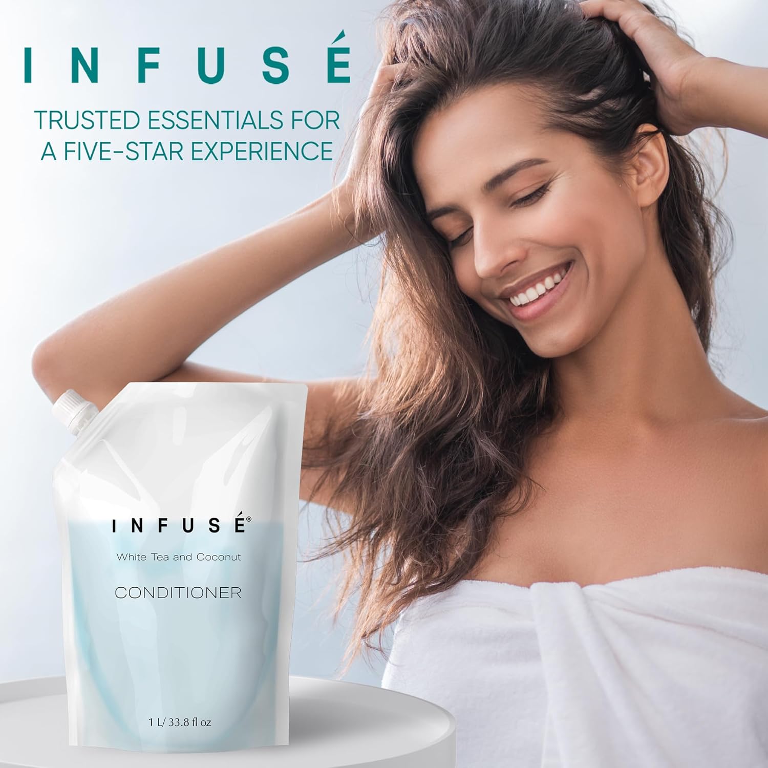 - HOTEL-QUALITY, LUXURIOUS AMENITIES: Enhance your guest experience with the Infuse White Tea and Coconut in a convenient 1-Liter Refill Bag, designed to refill wall-mounted and stand-alone dispensers. Enriched with white tea, coconut, organic aloe, and olive oil, this gentle, daily-use formula suits sensitive skin and hair. Ideal for hotels, vacation rentals, guest bathrooms, and homes, these premium amenities add sophistication and functionality